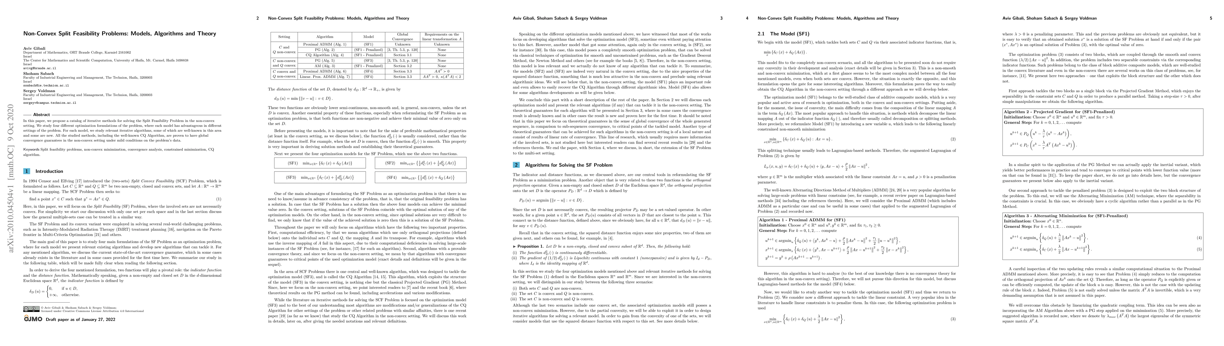 This research introduces new iterative methods for solving non-convex split feasibility problems, demonstrating that these algorithms, including a well-known one, reliably converge under mild conditions. The study explores four different problem models, each suited to different scenarios, advancing the theoretical understanding and practical solution approaches in this area.