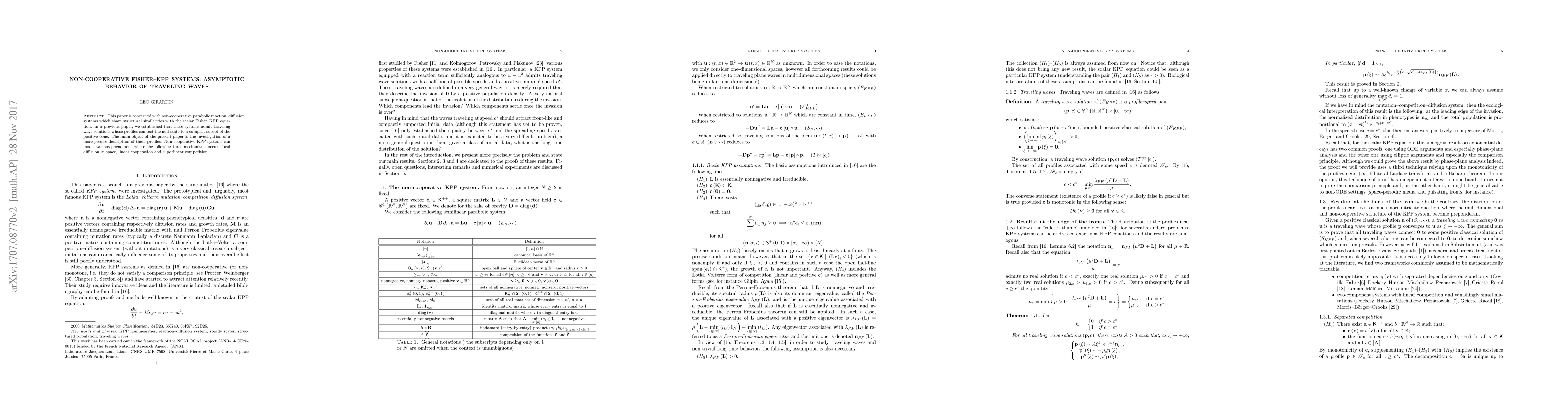 This paper investigates the asymptotic behavior of traveling waves in non-cooperative parabolic reaction-diffusion systems similar to the Fisher-KPP equation, focusing on their distribution and modeling phenomena involving local diffusion, linear cooperation, and superlinear competition.