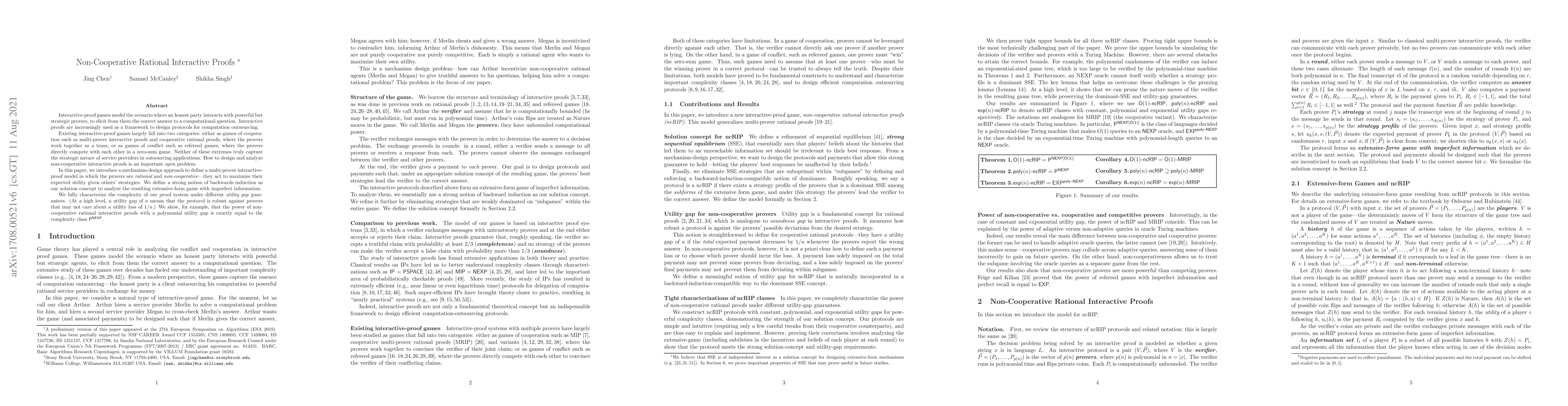 This paper introduces a non-cooperative interactive proof model where rational provers act to maximize their utility, contrasting with cooperative and conflicting proof games. It employs mechanism design to analyze the extensive-form game and provides utility gap guarantees analogous to soundness gap, fully characterizing the complexity of the proof system under different utility gap levels, showing that a polynomial utility gap corresponds to P^NEXP.