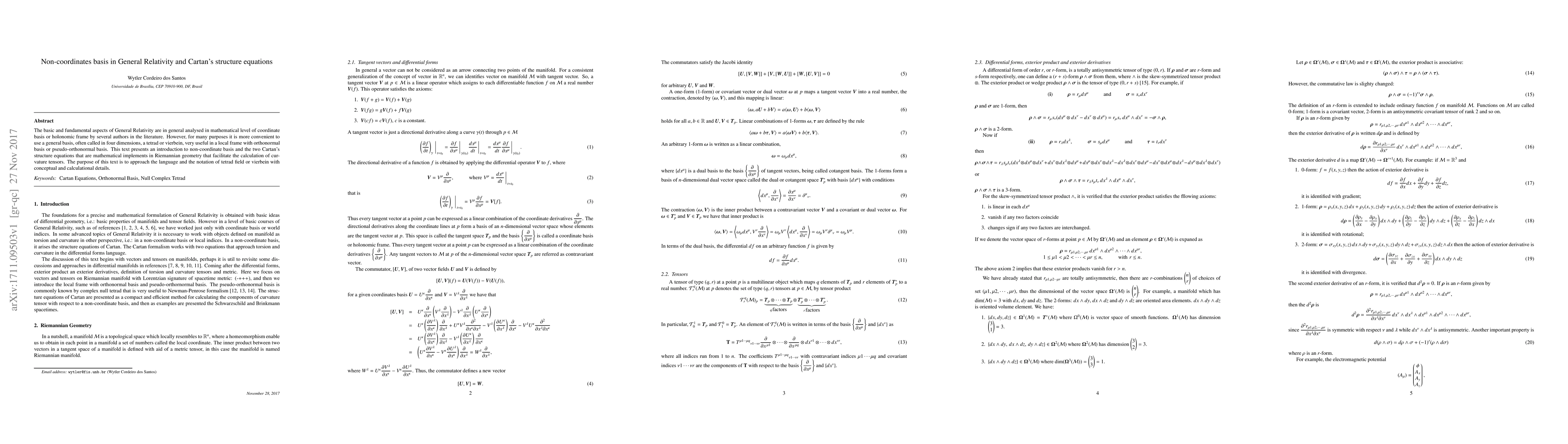 This paper introduces the use of non-coordinate tetrad or vierbein bases in General Relativity, emphasizing the utility of these bases in local frames. It explores Cartan's structure equations for calculating curvature tensors, offering a detailed conceptual and computational approach to the tetrad formalism.
