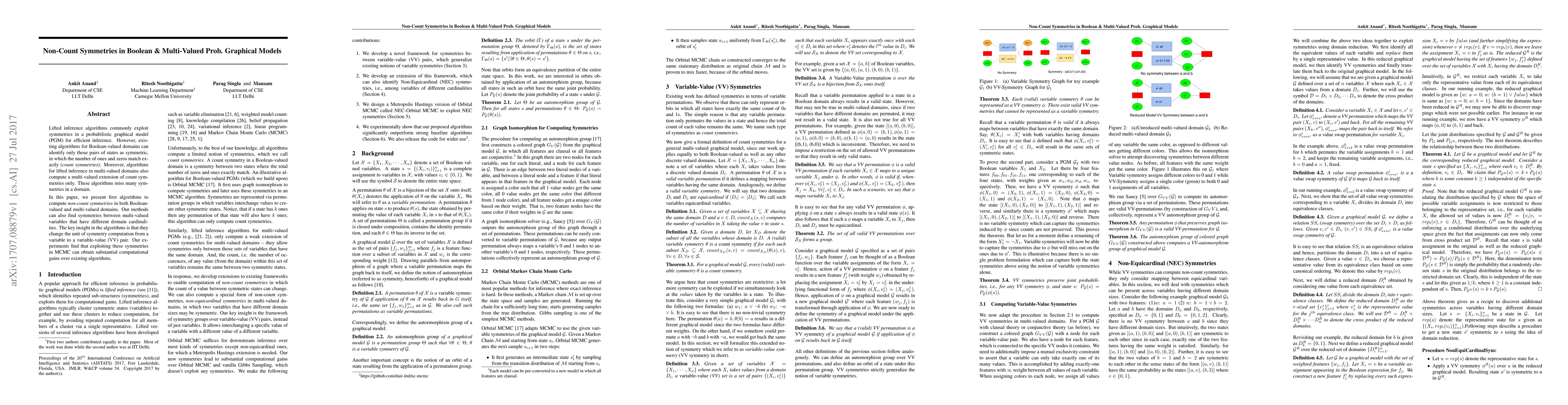 This paper introduces novel algorithms to compute non-count symmetries in probabilistic graphical models for Boolean and multi-valued domains, shifting the focus from variable pairs to variable-value pairs for more comprehensive symmetry identification. Experiments show significant computational gains in MCMC inference by exploiting these newly discovered symmetries.