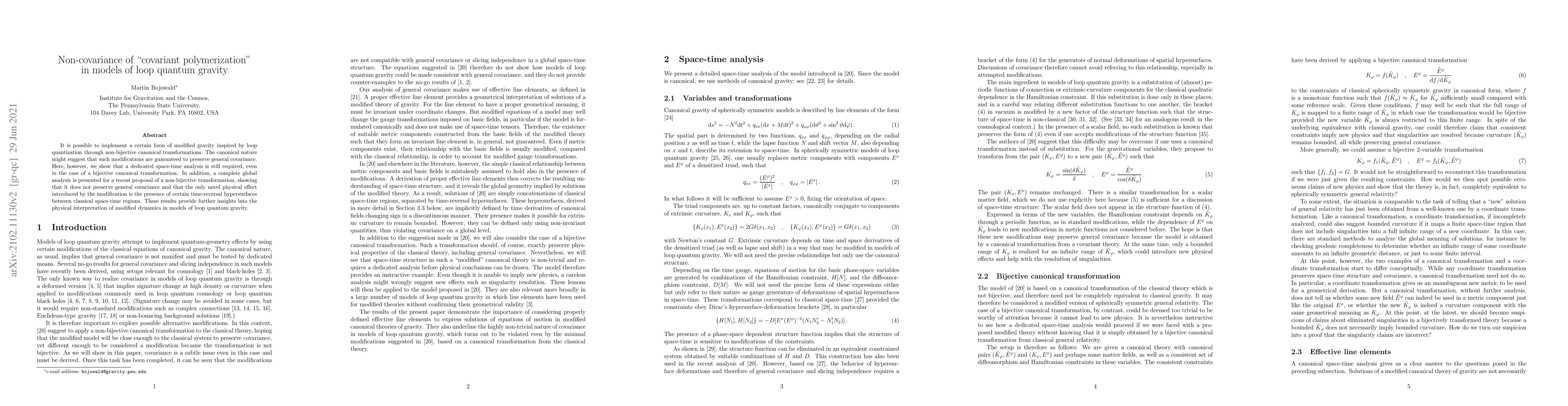This paper demonstrates that a modified form of gravity inspired by loop quantization, implemented via non-bijective canonical transformations, does not preserve general covariance. It highlights the presence of time-reversal hypersurfaces as a novel physical effect, providing deeper insights into the dynamics of loop quantum gravity models.