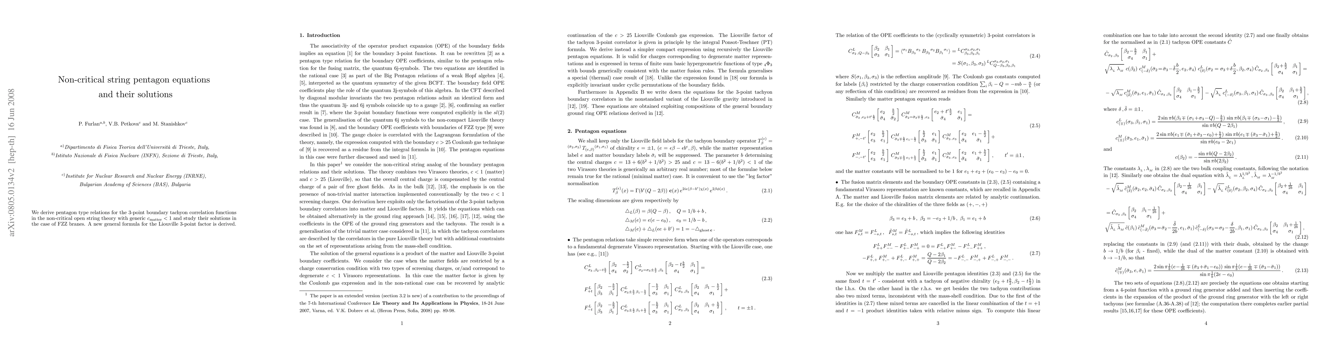 We derive pentagon type relations for the 3-point boundary tachyon correlation functions in the non-critical open string theory with generic c_{matter} < 1 and study their solutions in the case of FZZ branes. A new general formula for the Liouville 3-point factor is derived.