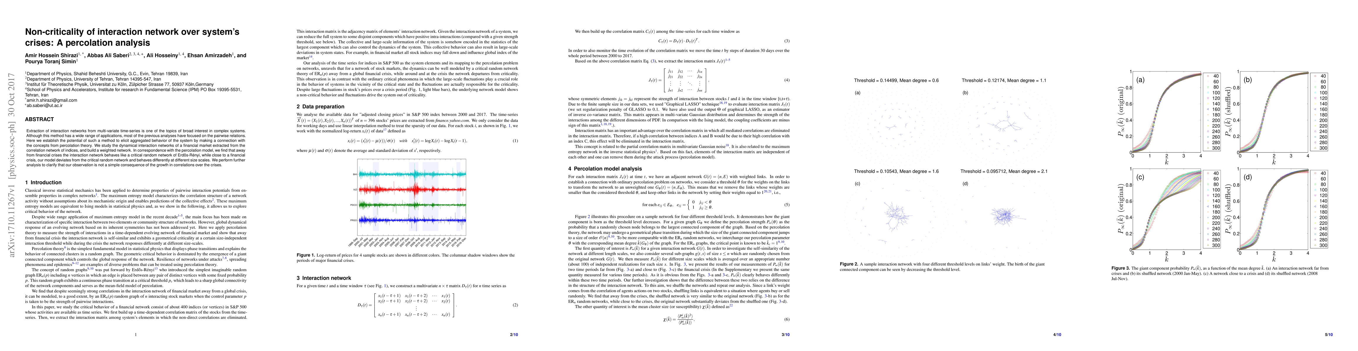 Researchers analyzed financial market interactions to find that near crises, the network behaves differently than usual random networks, deviating from expected critical behavior.