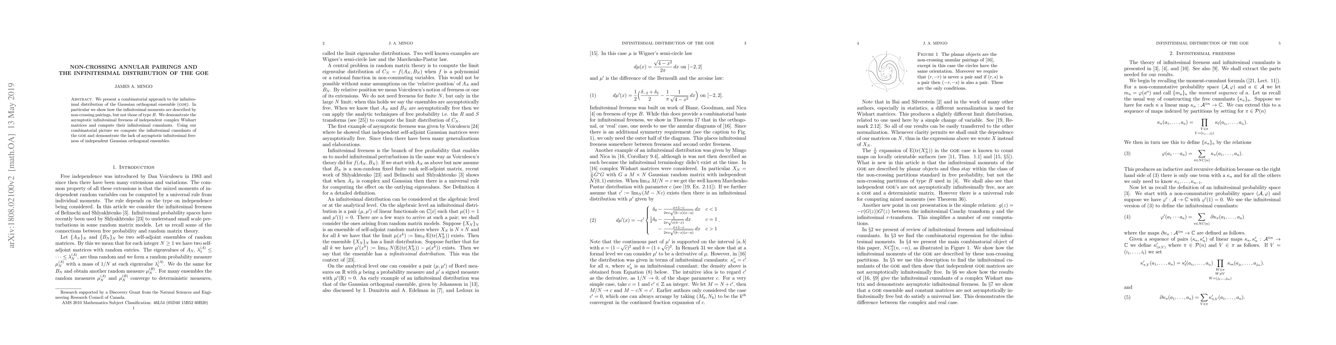 This paper introduces a combinatorial method to analyze the infinitesimal distribution of the Gaussian orthogonal ensemble (GOE), showing that its infinitesimal moments correspond to non-crossing partitions. It also demonstrates the asymptotic infinitesimal freeness of independent complex Wishart matrices and highlights the lack of such freeness in independent GOE ensembles.