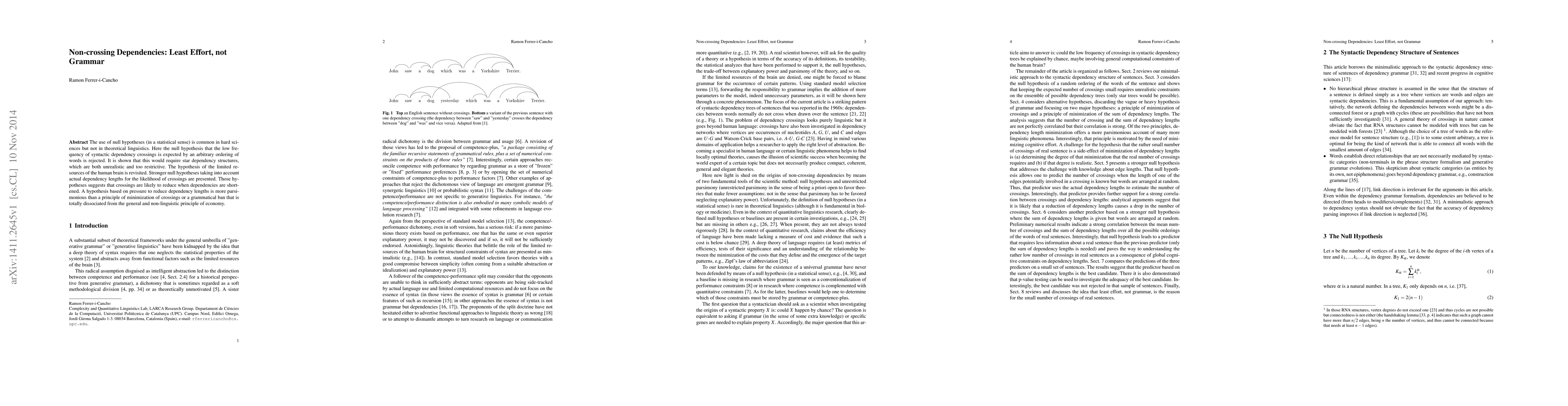 Researchers reject the null hypothesis that syntactic dependency crossings occur due to brain resource limitations, instead proposing hypotheses that consider actual dependency lengths and the pressure to reduce dependencies.