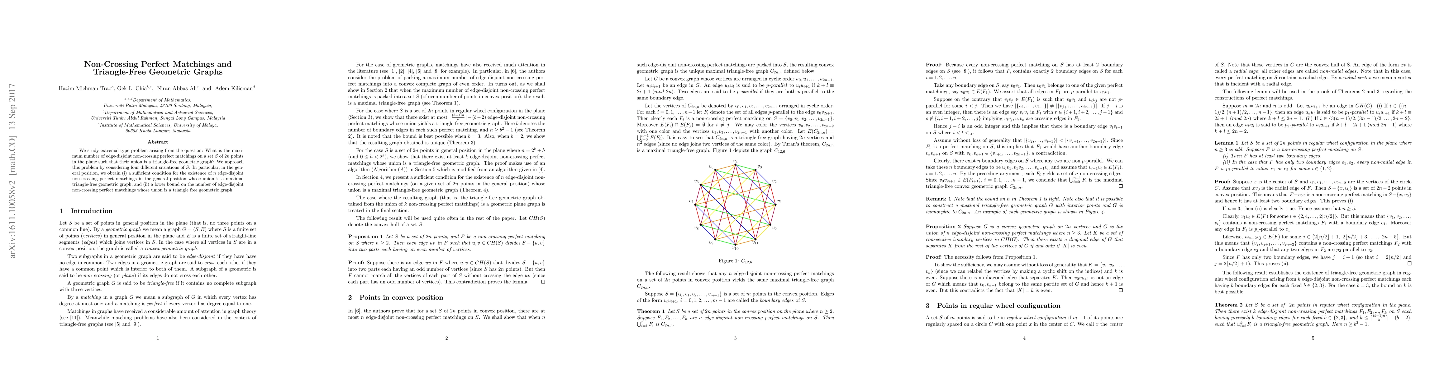 This paper explores the maximum number of edge-disjoint non-crossing perfect matchings in triangle-free geometric graphs formed by 2n points in the plane. It provides a sufficient condition for n such matchings in general positions and establishes a lower bound for their count.