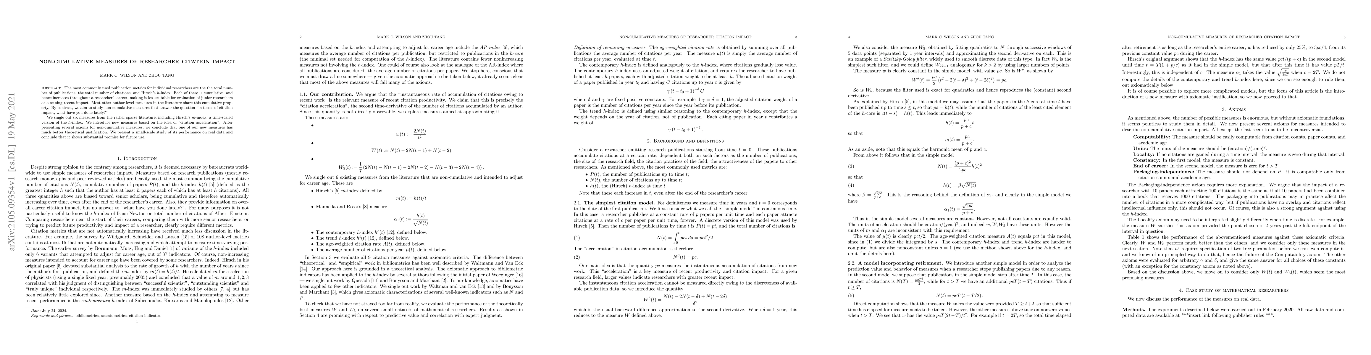 The most commonly used publication metrics for individual researchers are the the total number of publications, the total number of citations, and Hirsch's $h$-index. Each of these is cumulative, and hence increases throughout a researcher's career, making it less suitable for evaluation of junior researchers or assessing recent impact. Most other author-level measures in the literature share this cumulative property. By contrast, we aim to study non-cumulative measures that answer the question "in terms of citation impact, what have you done lately?" We single out six measures from the rather sparse literature, including Hirsch's $m$-index, a time-scaled version of the $h$-index. We introduce new measures based on the idea of "citation acceleration". After presenting several axioms for non-cumulative measures, we conclude that one of our new measures has much better theoretical justification. We present a small-scale study of its performance on real data and conclude that it shows substantial promise for future use.