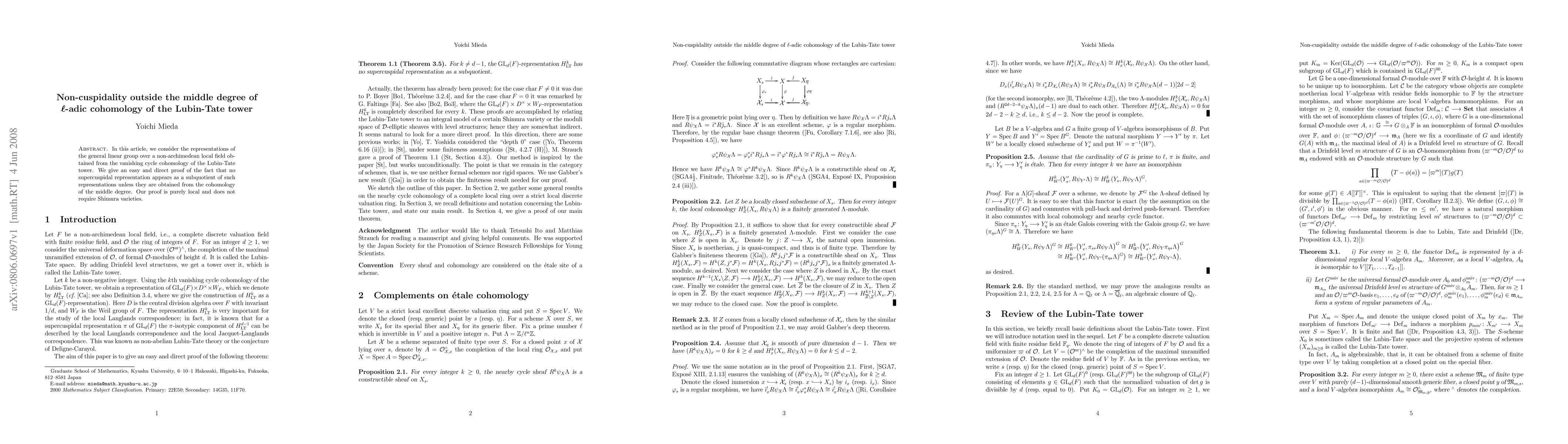 In this article, we consider the representations of the general linear group over a non-archimedean local field obtained from the vanishing cycle cohomology of the Lubin-Tate tower. We give an easy and direct proof of the fact that no supercuspidal representation appears as a subquotient of such representations unless they are obtained from the cohomology of the middle degree. Our proof is purely local and does not require Shimura varieties.