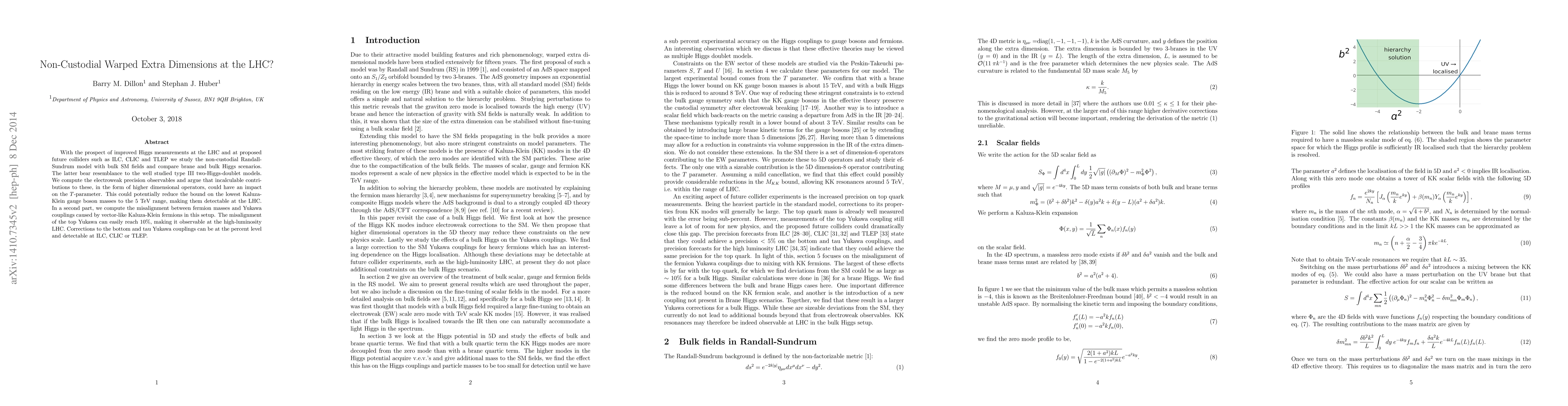 This paper investigates the non-custodial Randall-Sundrum model, comparing brane and bulk Higgs scenarios, and finds that higher-dimensional operators could reduce Kaluza-Klein gauge boson mass bounds to 5 TeV, making them detectable at the LHC. It also examines the misalignment between fermion masses and Yukawa couplings, predicting observable effects at the high-luminosity LHC and future colliders.