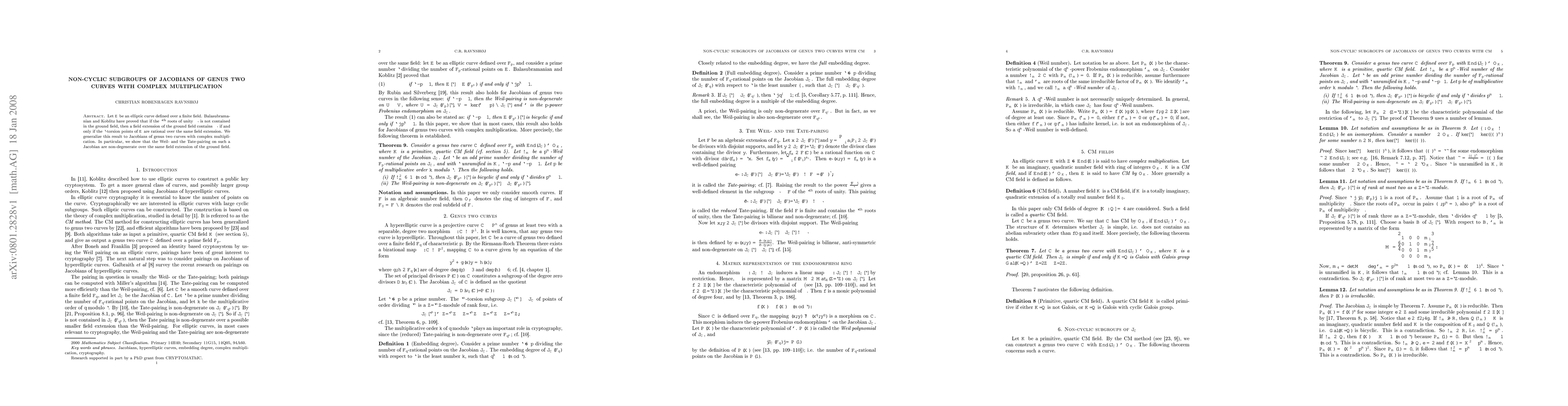 Let E be an elliptic curve defined over a finite field. Balasubramanian and Koblitz have proved that if the l-th roots of unity m_l is not contained in the ground field, then a field extension of the ground field contains m_l if and only if the l-torsion points of E are rational over the same field extension. We generalize this result to Jacobians of genus two curves with complex multiplication. In particular, we show that the Weil- and the Tate-pairing on such a Jacobian are non-degenerate over the same field extension of the ground field.