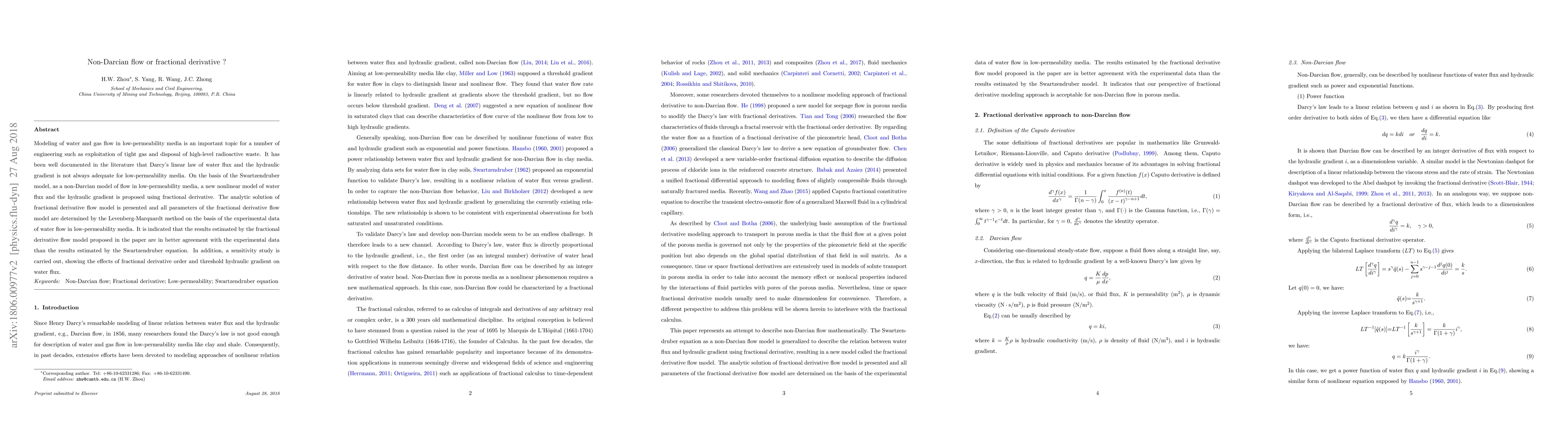 A new model using fractional derivative improves accuracy in modeling water flow in low-permeability media, outperforming the Swartzendruber equation in experimental data analysis.