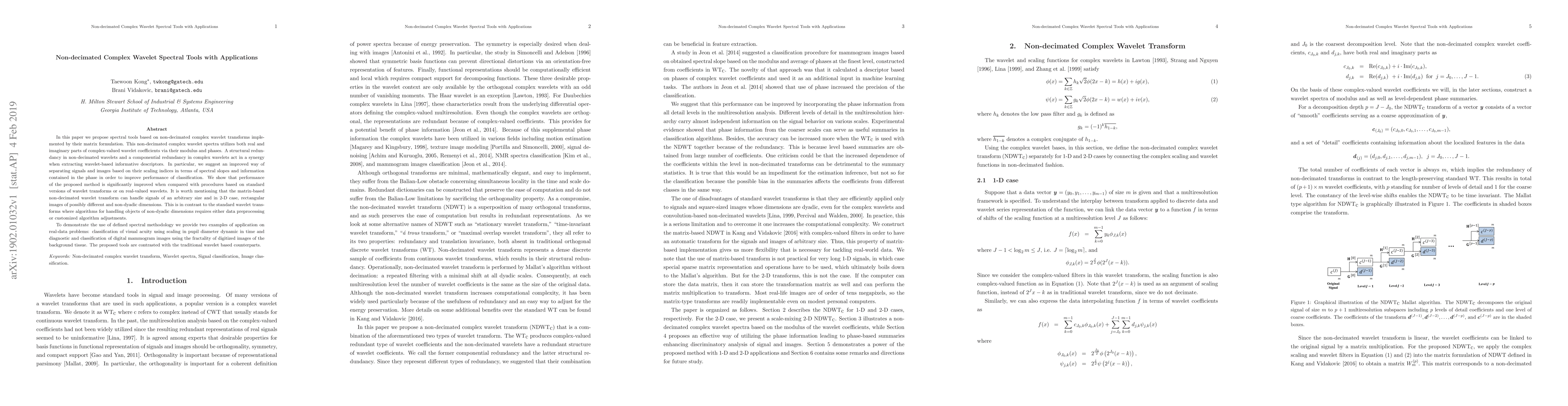 This paper introduces non-decimated complex wavelet spectral tools that utilize both the modulus and phases of complex-valued wavelet coefficients, significantly improving signal and image classification performance. The proposed matrix-based transform handles signals of arbitrary sizes and non-dyadic dimensions without requiring preprocessing, demonstrated through applications in visual acuity classification and digital mammogram analysis.