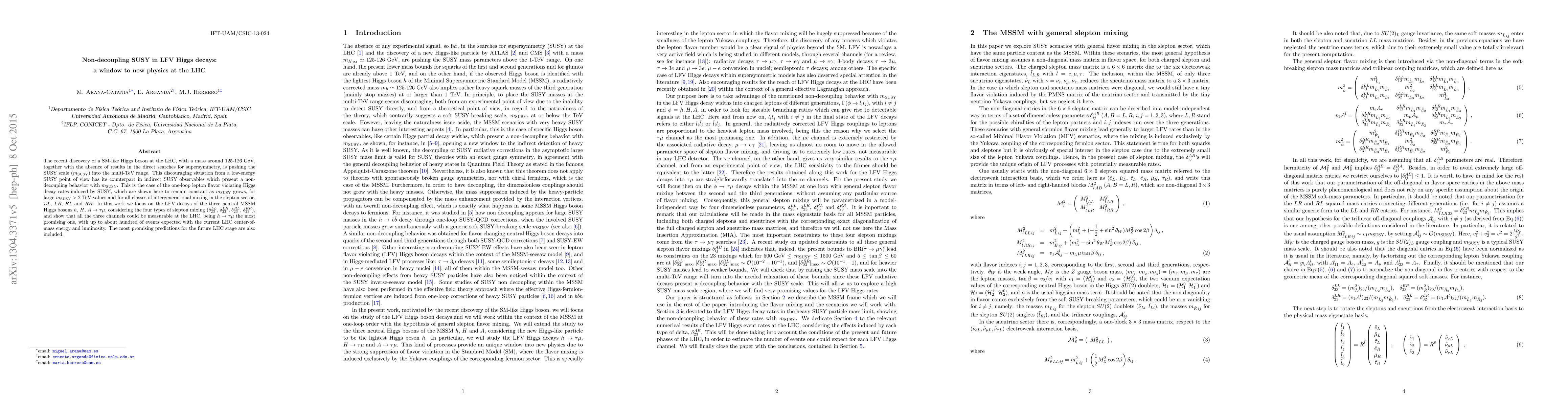 This paper explores the non-decoupling behavior of lepton flavor violating (LFV) Higgs decays in Supersymmetry (SUSY) scenarios, where the SUSY scale remains significant despite high masses. It highlights that LFV decays of neutral MSSM Higgs bosons into tau-mu pairs could be measurable at the LHC, with $h \to \tau \mu$ showing the most promise.