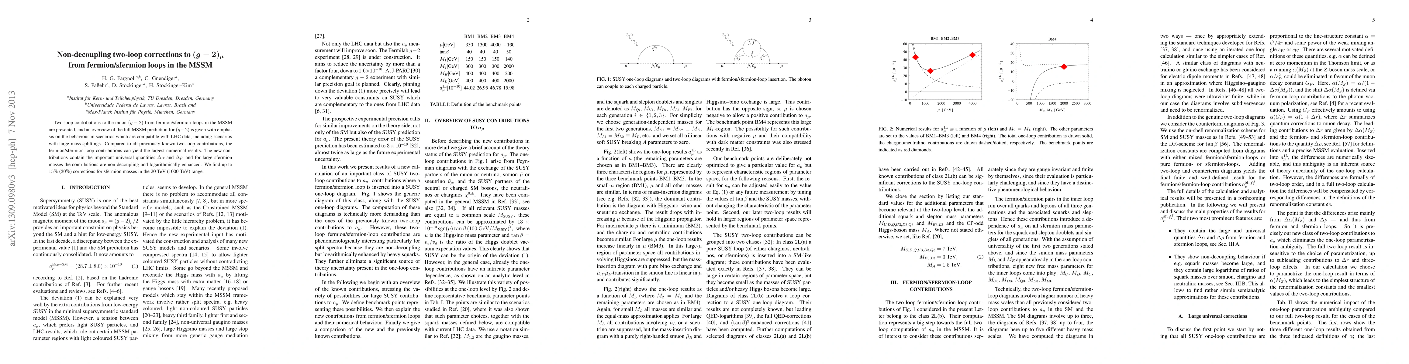 Two-loop contributions to the muon (g-2) from fermion/sfermion loops in the MSSM are presented, and an overview of the full MSSM prediction for (g-2) is given with emphasis on the behaviour in scenarios which are compatible with LHC data, including scenarios with large mass splittings. Compared to all previously known two-loop contributions, the fermion/sfermion-loop contributions can yield the largest numerical results. The new contributions contain the important universal quantities \Delta\alpha\ and \Delta\rho, and for large sfermion masses the contributions are non-decoupling and logarithmically enhanced. We find up to 15% (30%) corrections for sfermion masses in the 20 TeV (1000 TeV) range.
