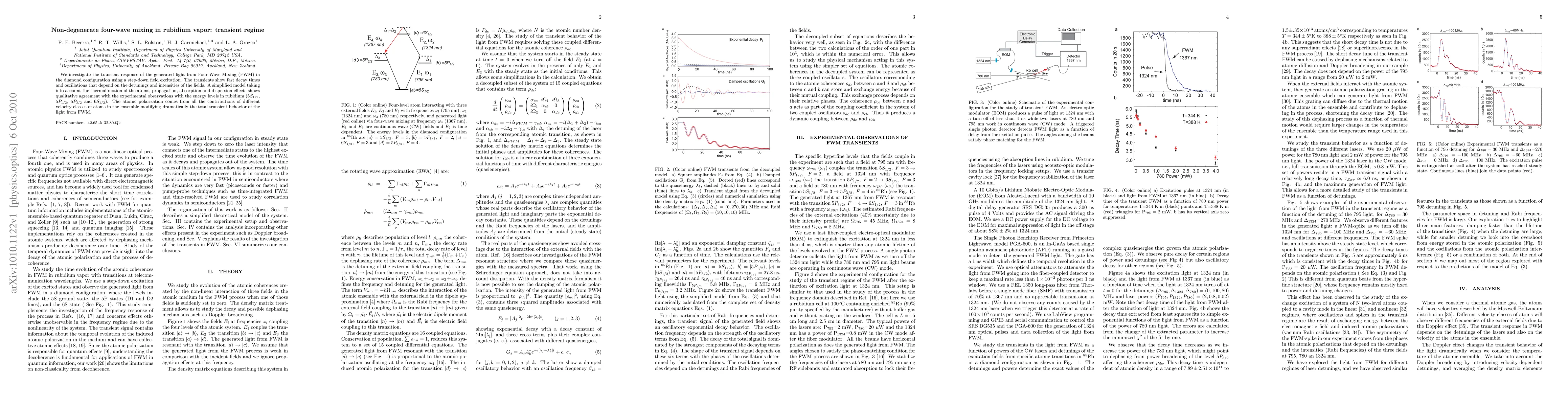 This paper examines the transient dynamics of Four-Wave Mixing in rubidium vapor, revealing rapid decay and oscillatory behaviors influenced by field detunings and intensities. A simplified model incorporating atomic motion and dispersion effects aligns well with experimental data, highlighting the role of different atomic velocity classes in shaping the transient FWM light response.
