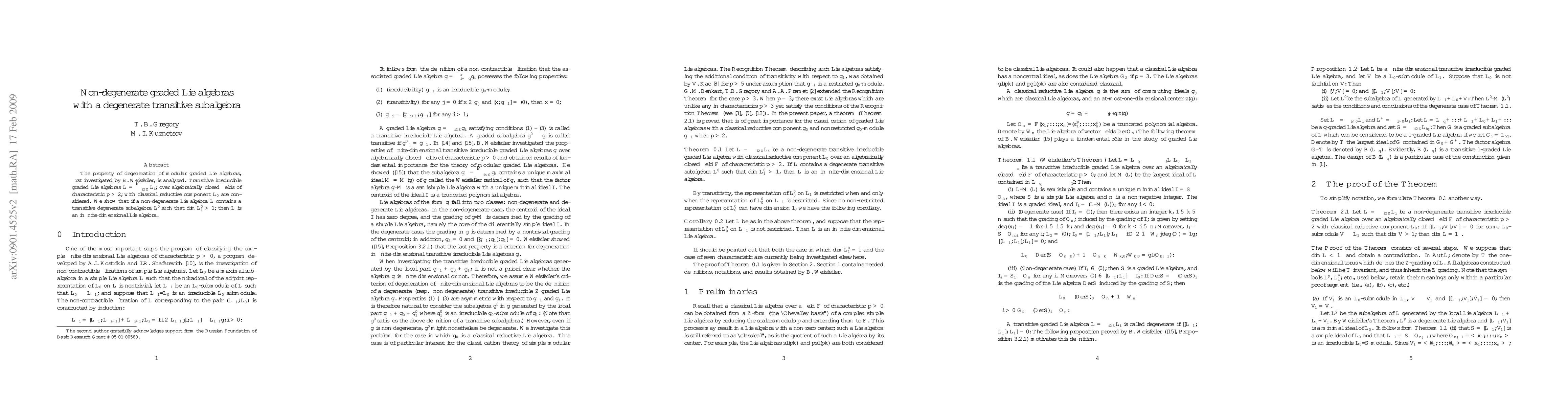 The property of degeneration of modular graded Lie algebras, first investigated by B. Weisfeiler, is analyzed. Transitive irreducible graded Lie algebras $L=\sum_{i\in \mathbb Z}L_i,$ over an algebraically closed field of characteristic $p>2,$ with classical reductive component $L_0$ are considered. We show that if a non-degenerate Lie algebra $L$ contains a transitive degenerate subalgebra $L'$ such that $\dim L'_1>1,$ then $L$ is an infinite-dimensional Lie algebra.