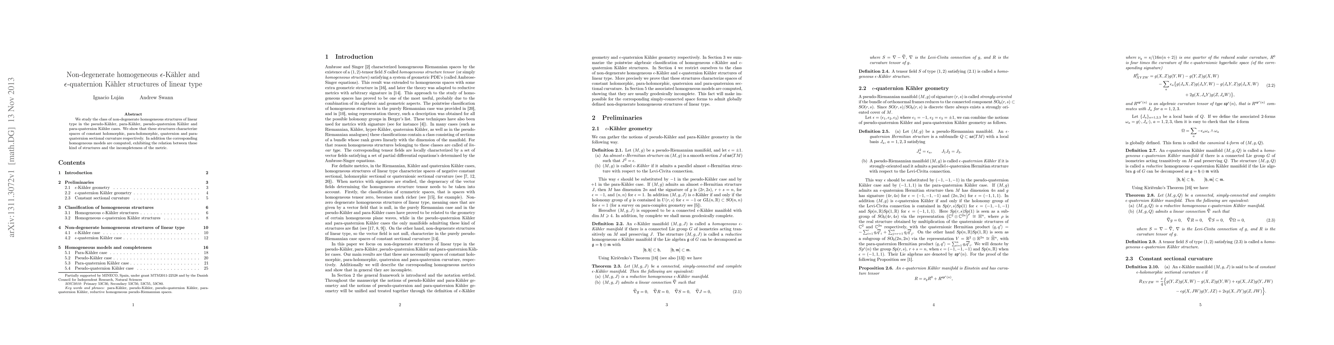 This paper investigates non-degenerate homogeneous $\epsilon$-Kähler and $\epsilon$-quaternion Kähler structures of linear type, showing they characterize spaces with constant holomorphic, para-holomorphic, quaternion, and para-quaternion sectional curvatures. It also computes homogeneous models, revealing the link between these structures and metric incompleteness.