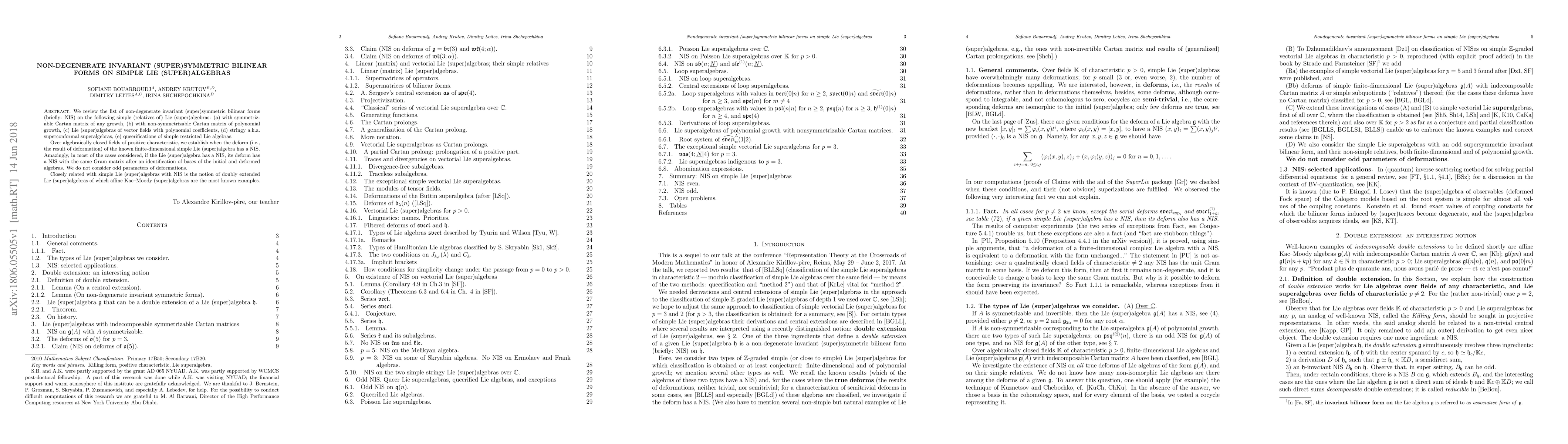 We review the list of non-degenerate invariant (super)symmetric bilinear forms (briefly: NIS) on the following simple (relatives of) Lie (super)algebras: (a) with symmetrizable Cartan matrix of any growth, (b) with non-symmetrizable Cartan matrix of polynomial growth, (c) Lie (super)algebras of vector fields with polynomial coefficients, (d) stringy a.k.a. superconformal superalgebras, (e) queerifications of simple restricted Lie algebras. Over algebraically closed fields of positive characteristic, we establish when the deform (i.e., the result of deformation) of the known finite-dimensional simple Lie (super)algebra has a NIS. Amazingly, in most of the cases considered, if the Lie (super)algebra has a NIS, its deform has a NIS with the same Gram matrix after an identification of bases of the initial and deformed algebras. We do not consider odd parameters of deformations. Closely related with simple Lie (super)algebras with NIS is the notion of doubly extended Lie (super)algebras of which affine Kac--Moody (super)algebras are the most known examples.