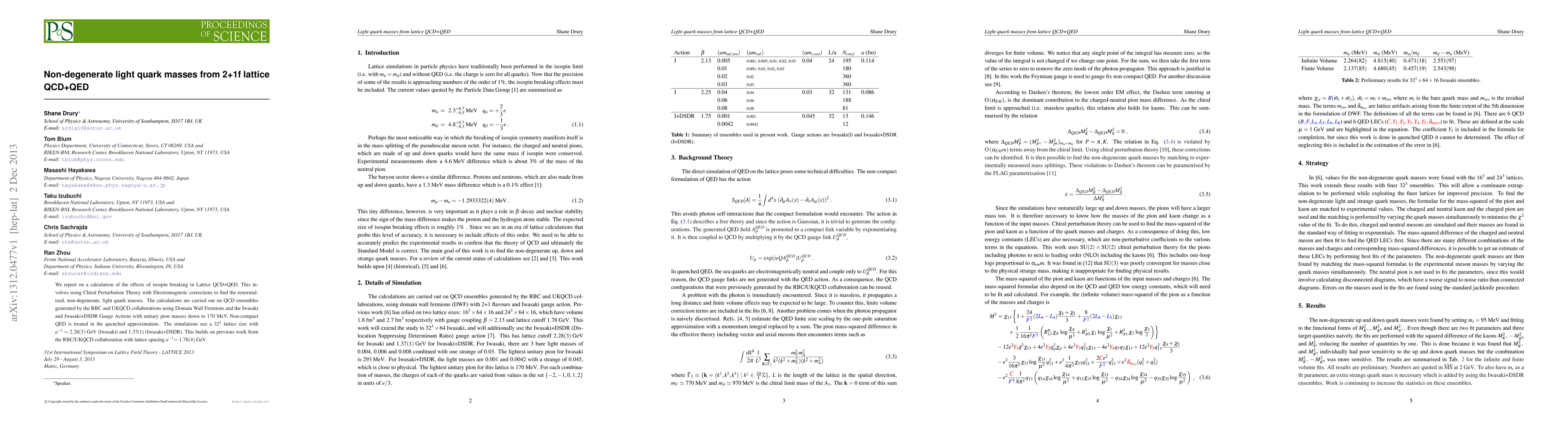 The paper presents a method for determining non-degenerate light quark masses using lattice QCD+QED simulations with Chiral Perturbation Theory and Electromagnetic corrections, extending previous work by the RBC/UKQCD collaboration.