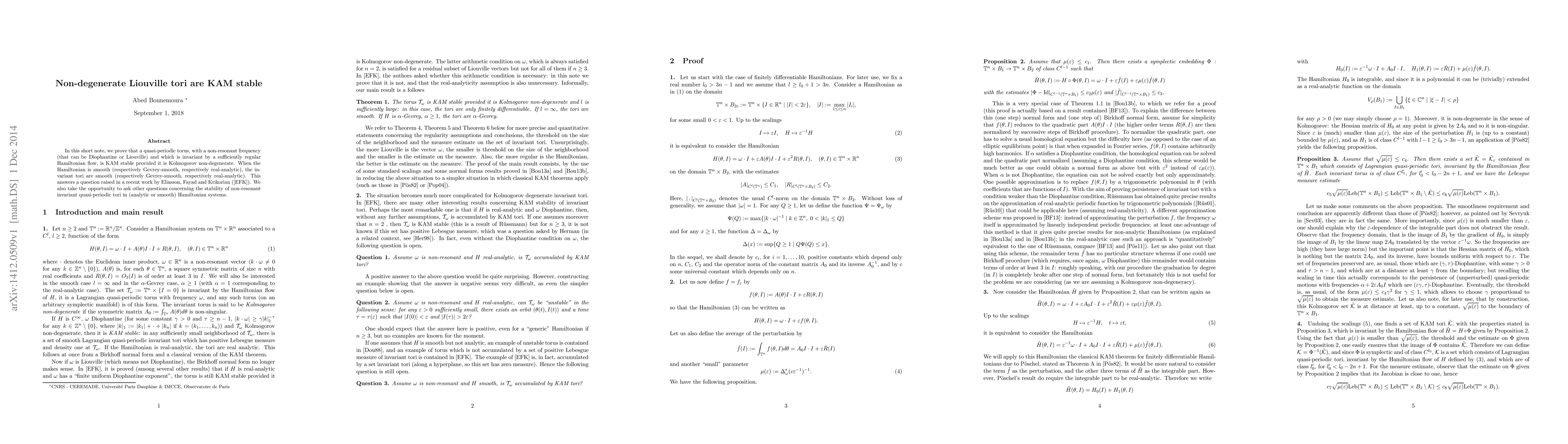 In this short note, we prove that a quasi-periodic torus, with a non-resonant frequency (that can be Diophantine or Liouville) and which is invariant by a sufficiently regular Hamiltonian flow, is KAM stable provided it is Kolmogorov non-degenerate. When the Hamiltonian is smooth (respectively Gevrey-smooth, respectively real-analytic), the in-variant tori are smooth (respectively Gevrey-smooth, respectively real-analytic). This answers a question raised in a recent work by Eliasson, Fayad and Krikorian ([EFK]). We also take the opportunity to ask other questions concerning the stability of non-resonant invariant quasi-periodic tori in (analytic or smooth) Hamiltonian systems.
