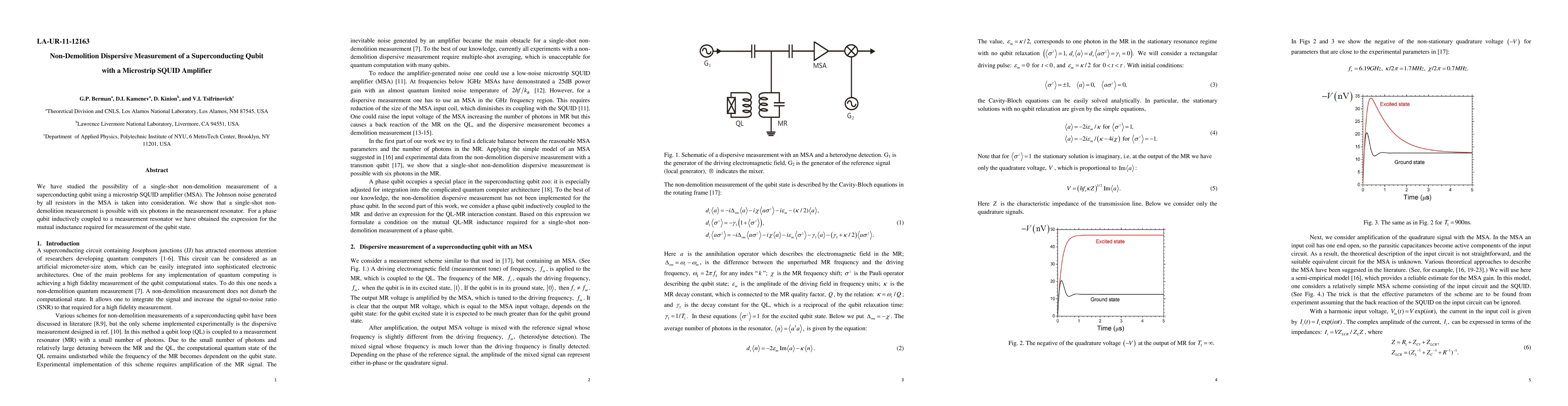 This paper explores the feasibility of non-demolition single-shot measurement of a superconducting qubit via a microstrip SQUID amplifier, considering Johnson noise. It demonstrates that a measurement with six photons in the resonator is achievable and derives the required mutual inductance for phase qubit state measurement.