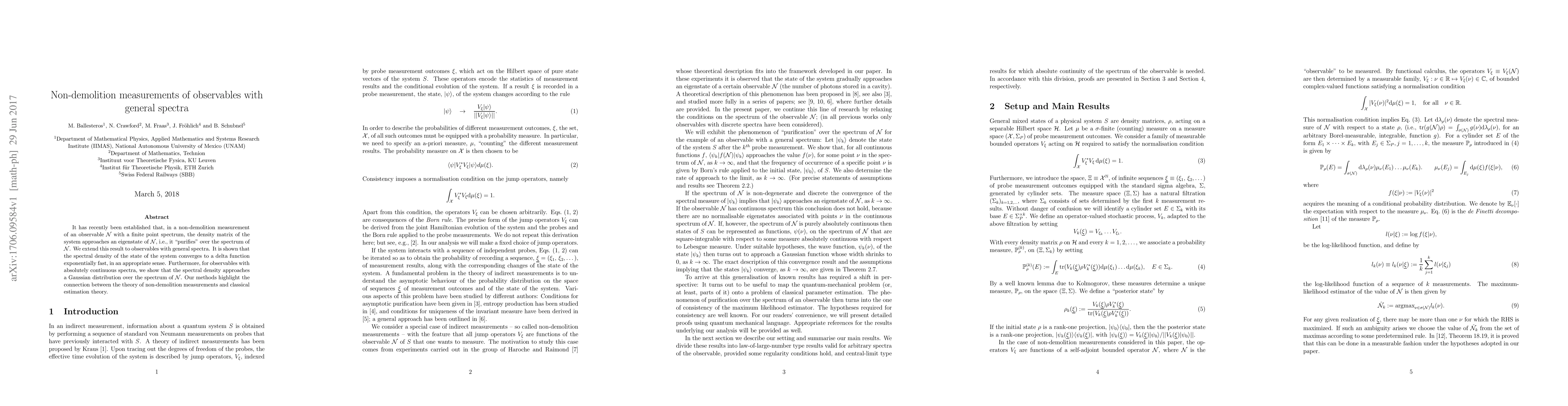 Researchers show that in non-demolition measurements of observables with general spectra, the system's density matrix purifies to an eigenstate, converging to a delta function or Gaussian distribution over time, connecting quantum theory to classical estimation theory.