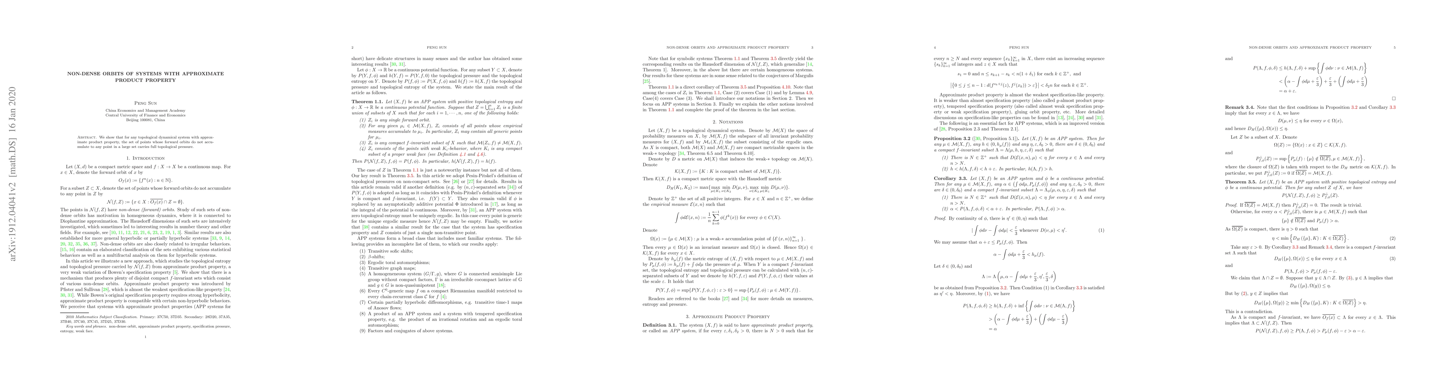We show that for any topological dynamical system with approximate product property, the set of points whose forward orbits do not accumulate to any point in a large set carries full topological pressure.