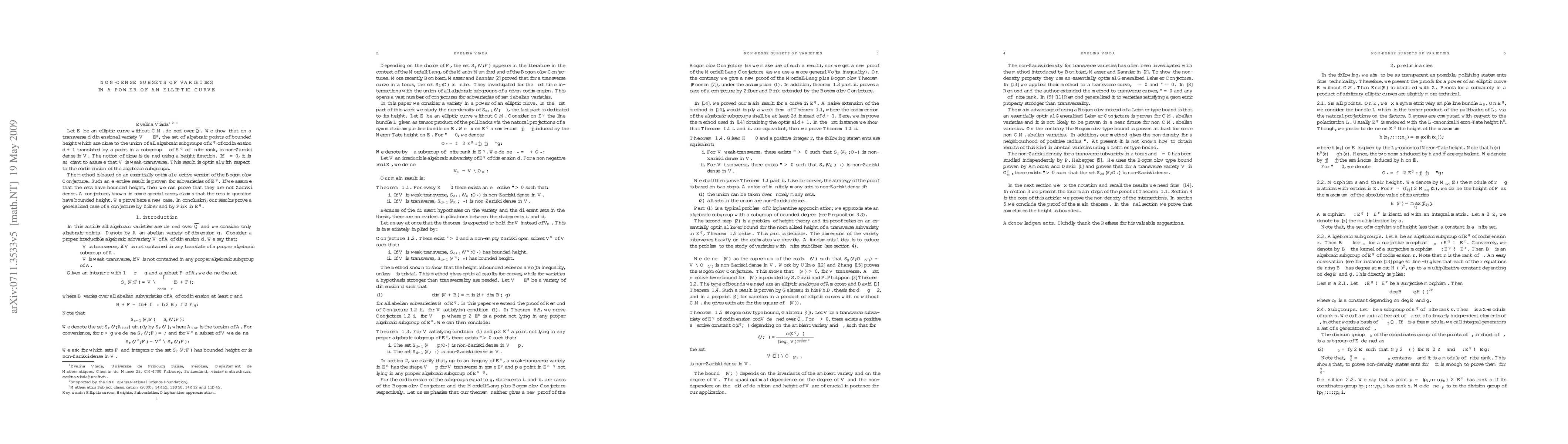 Let V be an algebraic variety embedded in a power of an elliptic curve, both defined over the algebraic numbers. We show that the set of algebraic points of V which are of bounded height and which satisfy certain algebraic conditions are a non-dense subset of V. This result has implications in the context of the Pink-Zilber Conjecture and Mordel-Lang plus Bogomolov Theorem.