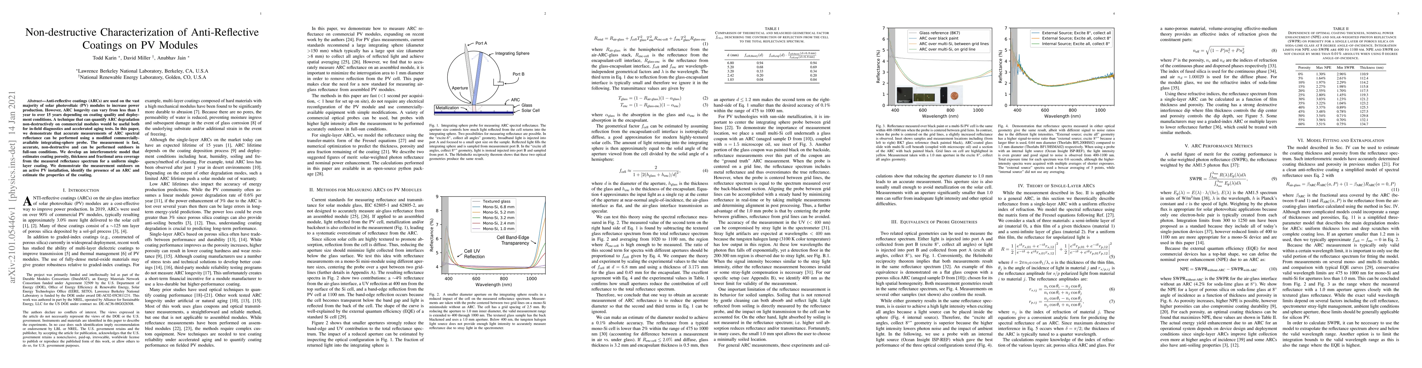 This study introduces a quick, non-destructive method to measure and assess anti-reflective coatings on solar panels using a modified device that works outdoors in sunlight. The technique accurately estimates coating properties, helping monitor their durability and performance over time.