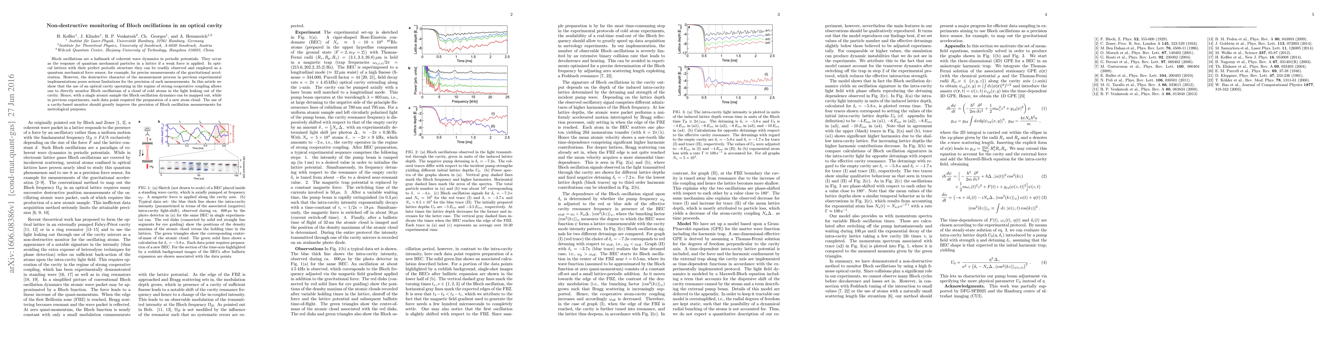 This paper demonstrates a non-destructive method for monitoring Bloch oscillations in an optical cavity, allowing real-time tracking of cold atoms' dynamics without the need for repeated sample preparations. This approach enhances the precision of quantum mechanical force sensors, particularly for gravitational acceleration measurements.