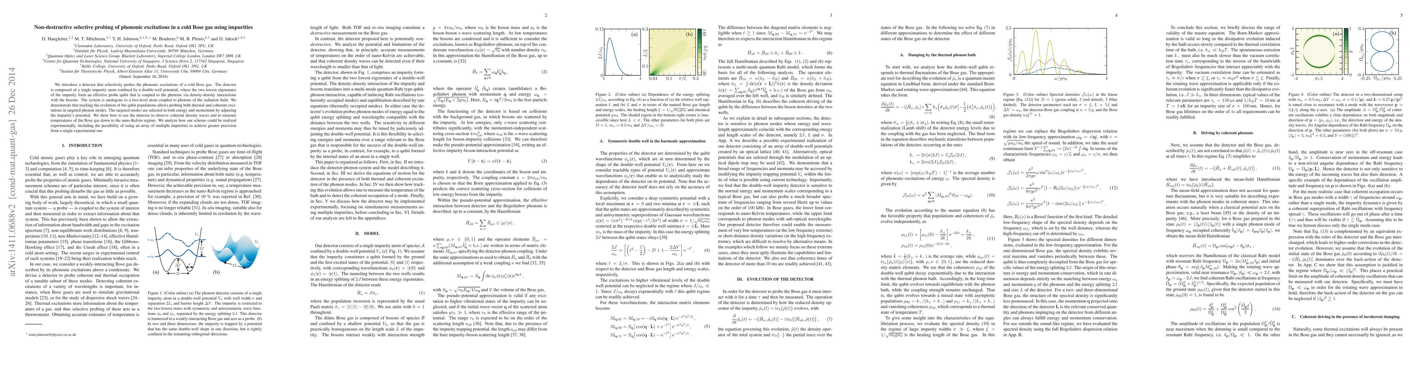 We introduce a detector that selectively probes the phononic excitations of a cold Bose gas. The detector is composed of a single impurity atom confined by a double-well potential, where the two lowest eigenstates of the impurity form an effective probe qubit that is coupled to the phonons via density-density interactions with the bosons. The system is analogous to a two-level atom coupled to photons of the radiation field. We demonstrate that tracking the evolution of the qubit populations allows probing both thermal and coherent excitations in targeted phonon modes. The targeted modes are selected in both energy and momentum by adjusting the impurity's potential. We show how to use the detector to observe coherent density waves and to measure temperatures of the Bose gas down to the nano-Kelvin regime. We analyze how our scheme could be realized experimentally, including the possibility of using an array of multiple impurities to achieve greater precision from a single experimental run.