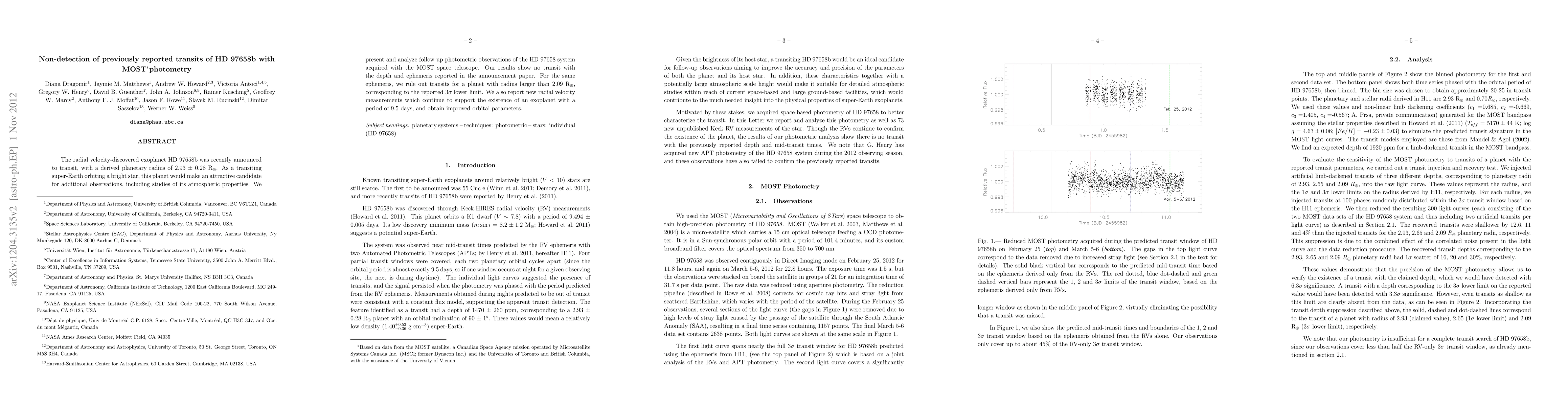 The MOST space telescope found no transits of the exoplanet HD 97658b, challenging its reported transiting nature and derived radius of 2.93 R_Earth. New radial velocity data confirm the planet's existence but rule out transits for a planet larger than 2.09 R_Earth.