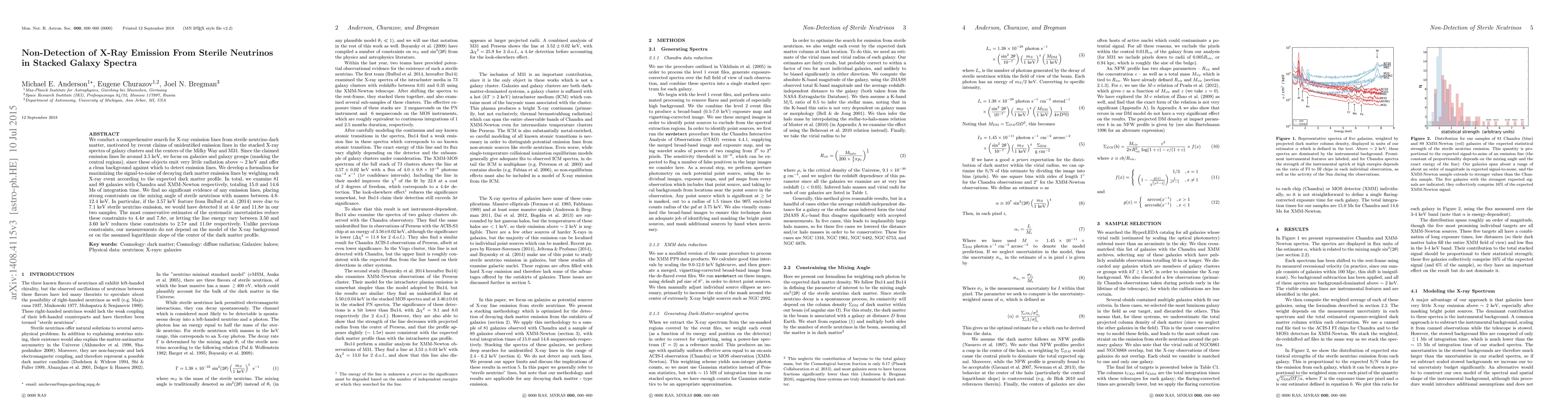 This research paper reports the non-detection of X-ray emission lines from sterile neutrinos in stacked galaxy spectra, using data from Chandra and XMM-Newton. The study places strong constraints on the mixing angle of sterile neutrinos, particularly refuting the 3.57 keV feature previously attributed to such emissions.