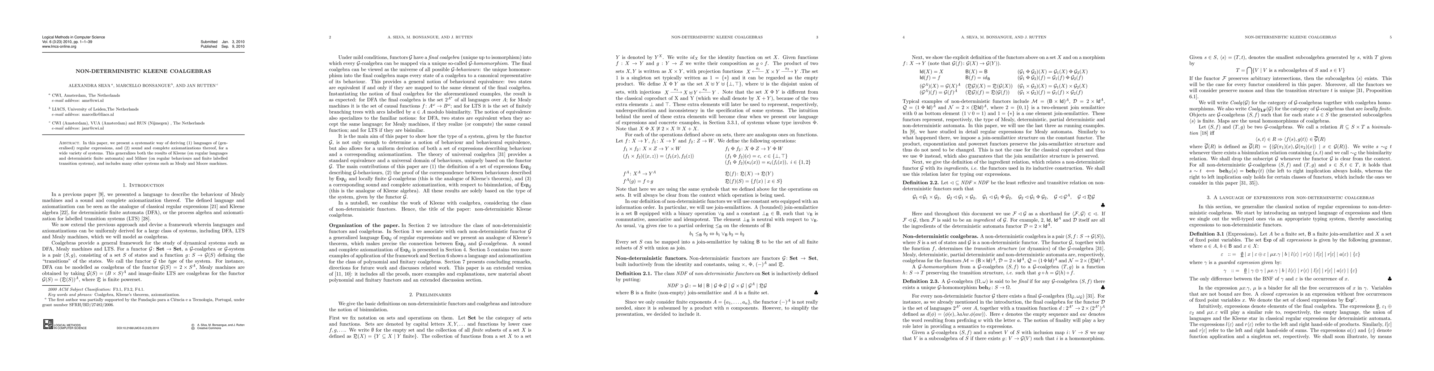 In this paper, we present a systematic way of deriving (1) languages of (generalised) regular expressions, and (2) sound and complete axiomatizations thereof, for a wide variety of systems. This generalizes both the results of Kleene (on regular languages and deterministic finite automata) and Milner (on regular behaviours and finite labelled transition systems), and includes many other systems such as Mealy and Moore machines.