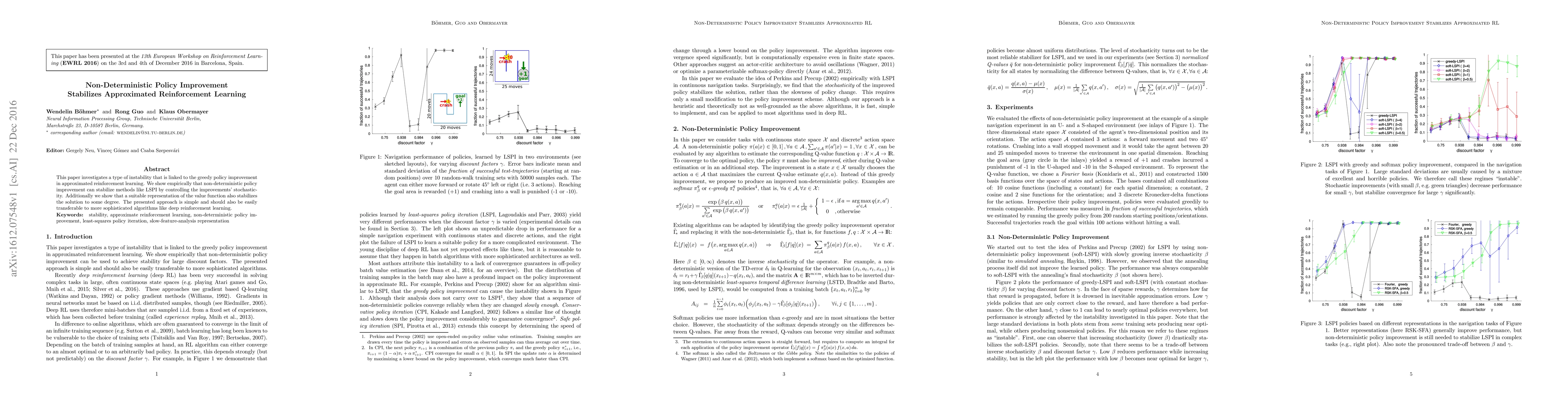 Non-deterministic policy improvement stabilizes approximated reinforcement learning by controlling stochasticity, offering a simple approach to stabilize methods like LSPI that can also be applied to deep reinforcement learning.