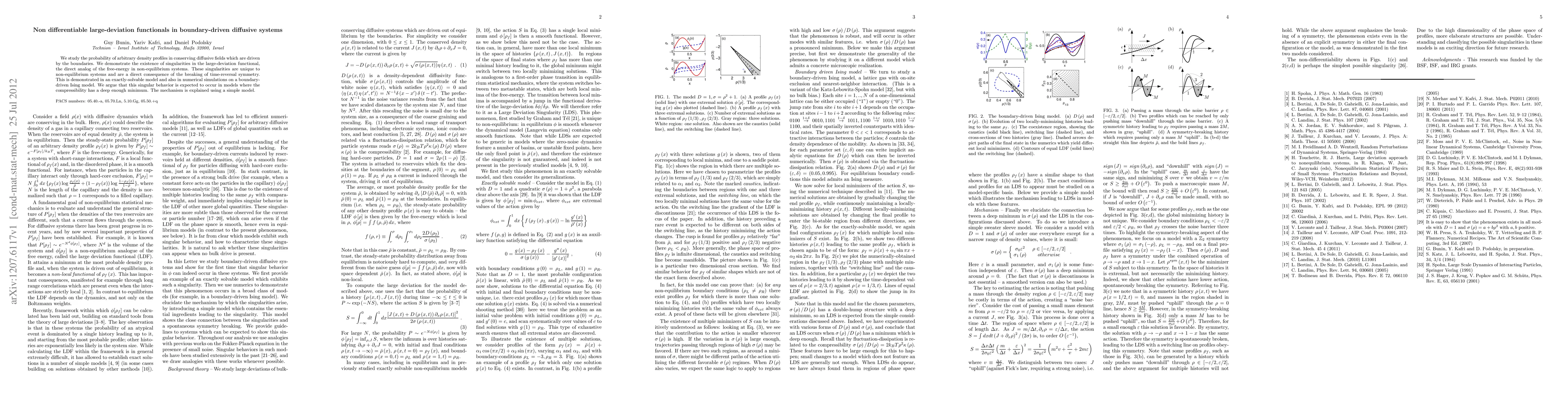 This paper investigates the probability of density profiles in non-equilibrium diffusive systems driven by boundaries, revealing singularities in the large-deviation functional due to broken time-reversal symmetry. These findings are demonstrated through an exactly-solvable model and numerical simulations on a boundary-driven Ising model.