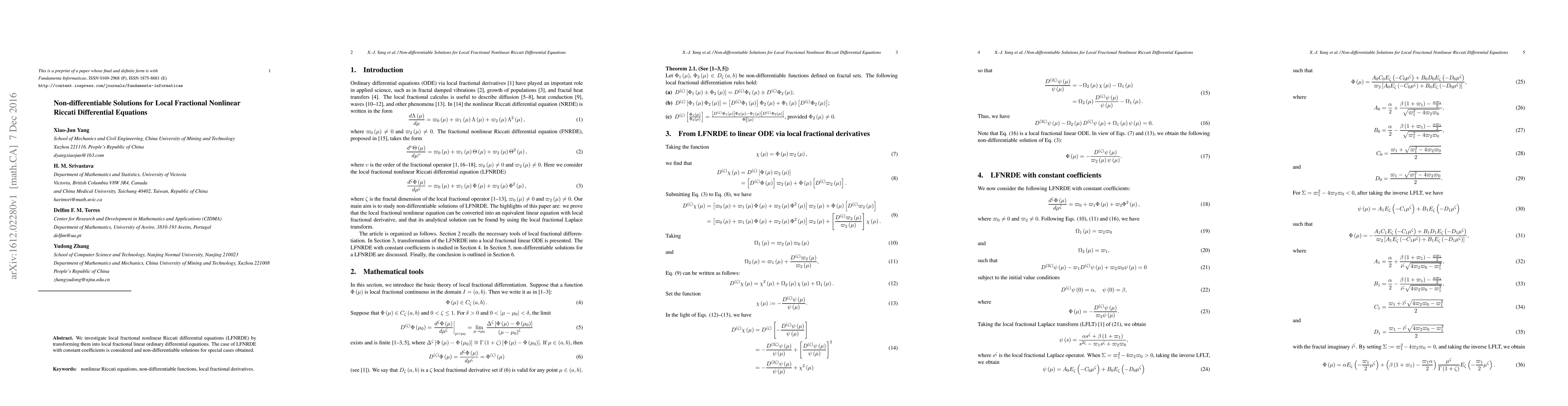 The research investigates local fractional nonlinear Riccati differential equations (LFNRDE) by transforming them into local fractional linear ordinary differential equations (ODE) for special cases with constant coefficients, deriving non-differentiable solutions.