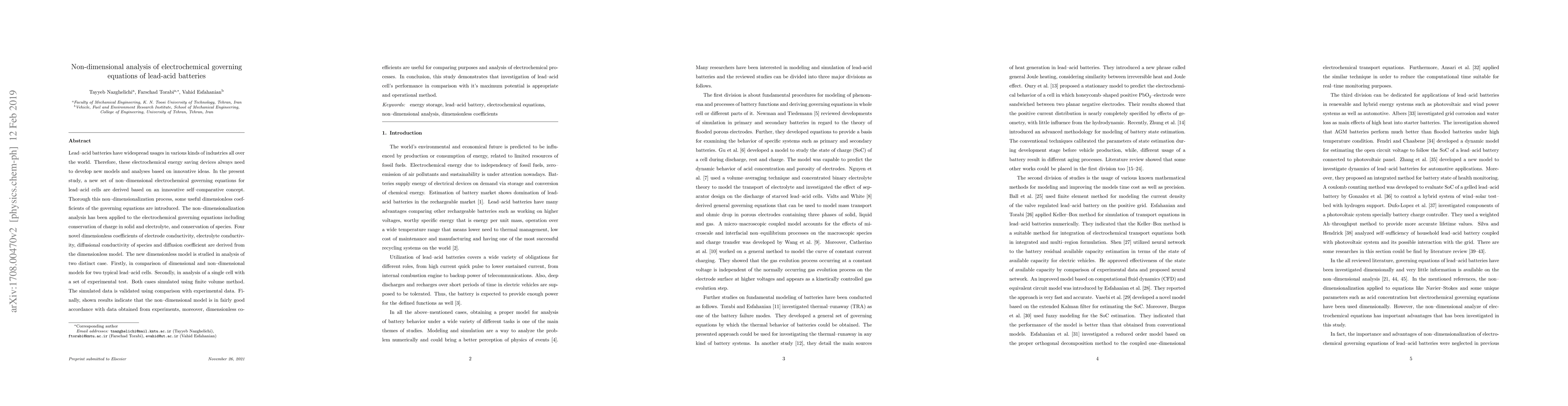 This study introduces dimensionless coefficients through non-dimensionalization of lead-acid battery electrochemical equations, deriving four novel dimensionless parameters. The non-dimensional model is validated against experimental data, showing good agreement and utility for comparative electrochemical analysis.