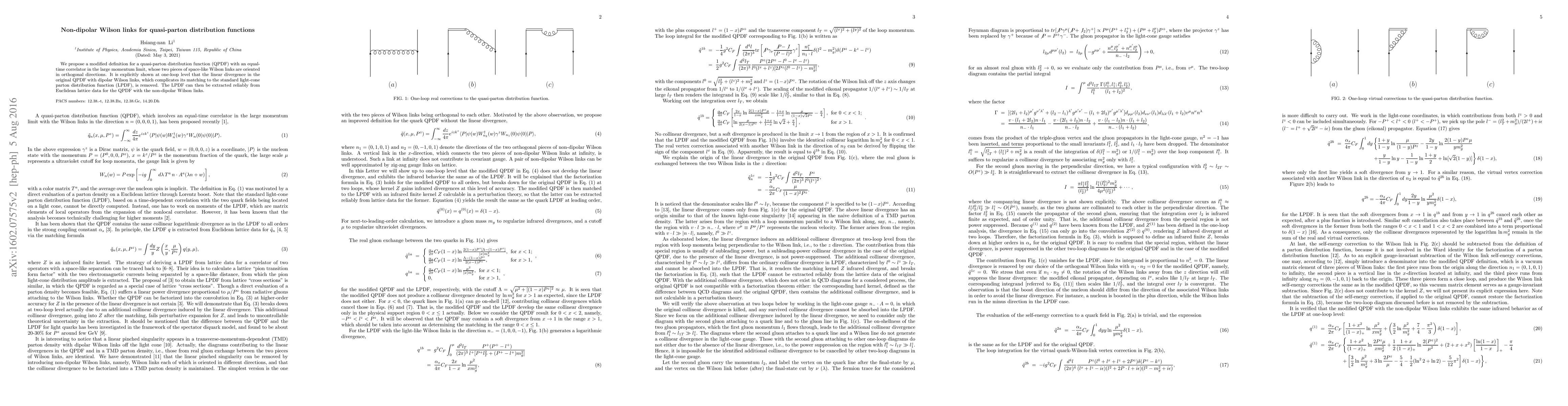 The research proposes a modified definition for quasi-parton distribution functions (QPDFs) using non-dipolar Wilson links in the large momentum limit, explicitly demonstrating the removal of linear divergence at one-loop level that complicates matching to light-cone parton distribution functions (LPDFs).