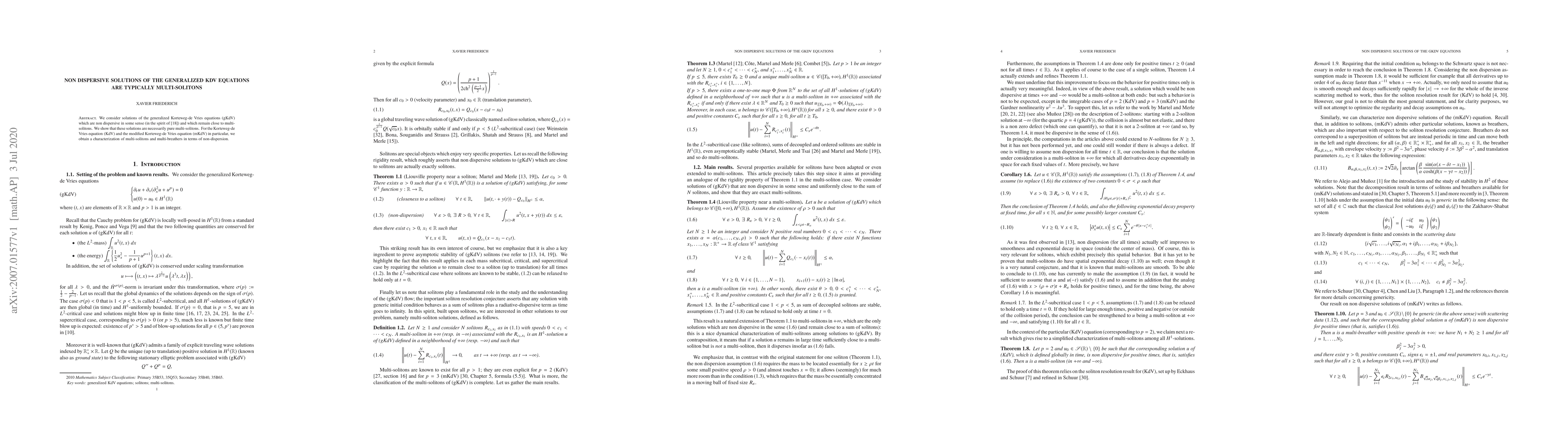 This research demonstrates that non-dispersive solutions of the generalized KdV equations are pure multi-solitons, with specific characterizations for KdV and mKdV. It underscores the importance of non-dispersion in identifying multi-soliton and multi-breather solutions.