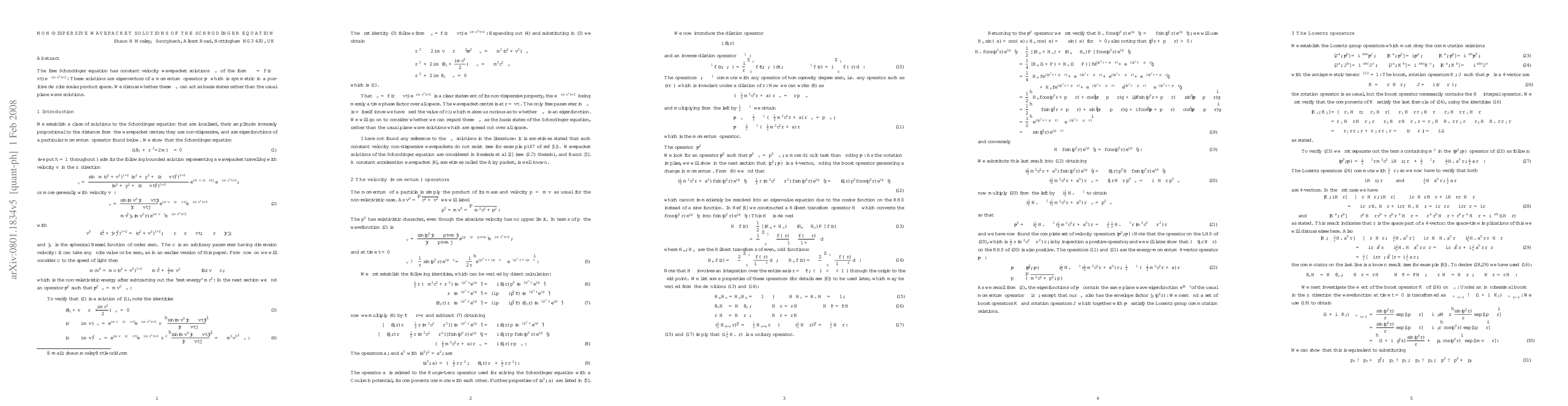 This research explores non-dispersive wavepacket solutions of the Schrödinger equation, suggesting they could serve as basis states instead of traditional plane wave solutions. It discusses their properties as eigenvectors of a momentum operator in a positive definite scalar product space.