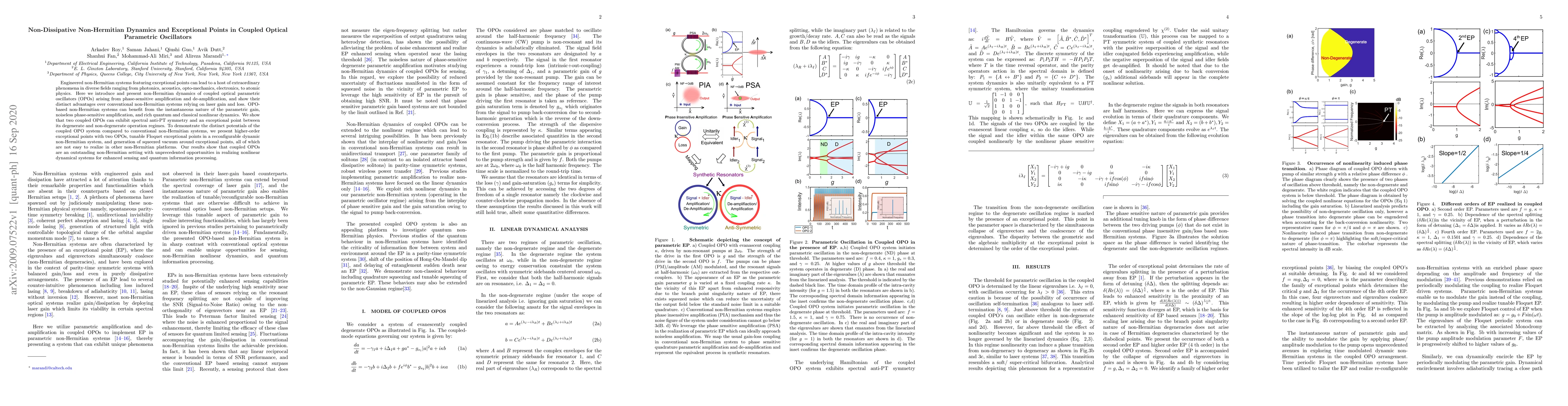 This research paper explores non-dissipative non-Hermitian dynamics in coupled optical parametric oscillators, demonstrating exceptional points and unique advantages such as noiseless amplification and rich nonlinear dynamics. The study highlights superior capabilities over conventional non-Hermitian systems, including higher-order exceptional points and tunable Floquet exceptional points.