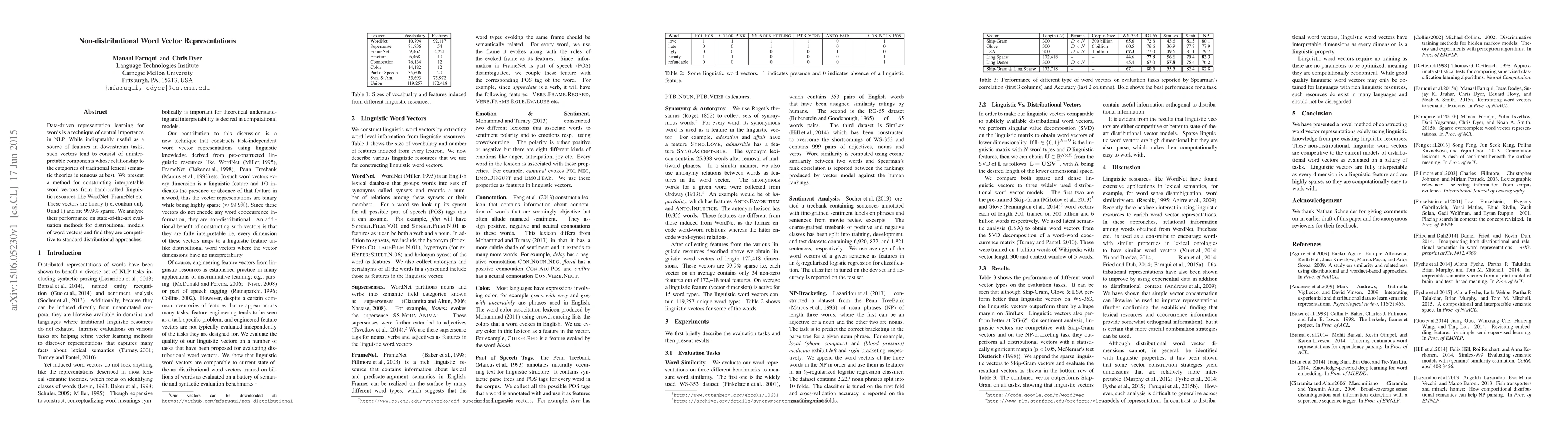 This paper introduces a method for creating interpretable binary word vectors using linguistic resources, demonstrating their competitive performance against standard distributional models in NLP tasks. The proposed vectors, derived from resources like WordNet, maintain high sparsity and interpretability.