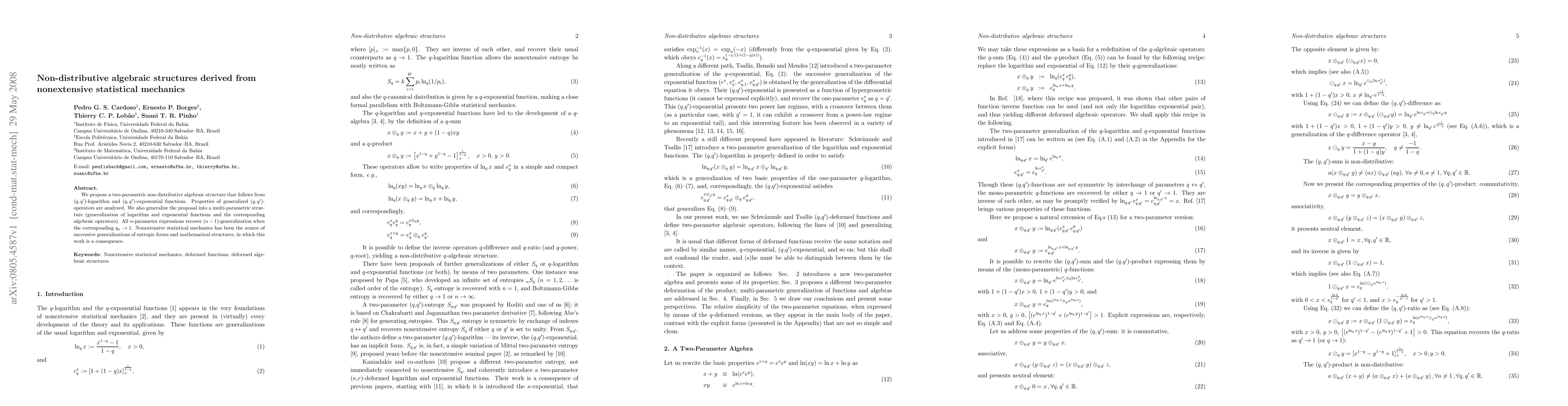 We propose a two-parametric non-distributive algebraic structure that follows from $(q,q')$-logarithm and $(q,q')$-exponential functions. Properties of generalized $(q,q')$-operators are analyzed. We also generalize the proposal into a multi-parametric structure (generalization of logarithm and exponential functions and the corresponding algebraic operators). All $n$-parameter expressions recover $(n-1)$-generalization when the corresponding $q_n\to1$. Nonextensive statistical mechanics has been the source of successive generalizations of entropic forms and mathematical structures, in which this work is a consequence.