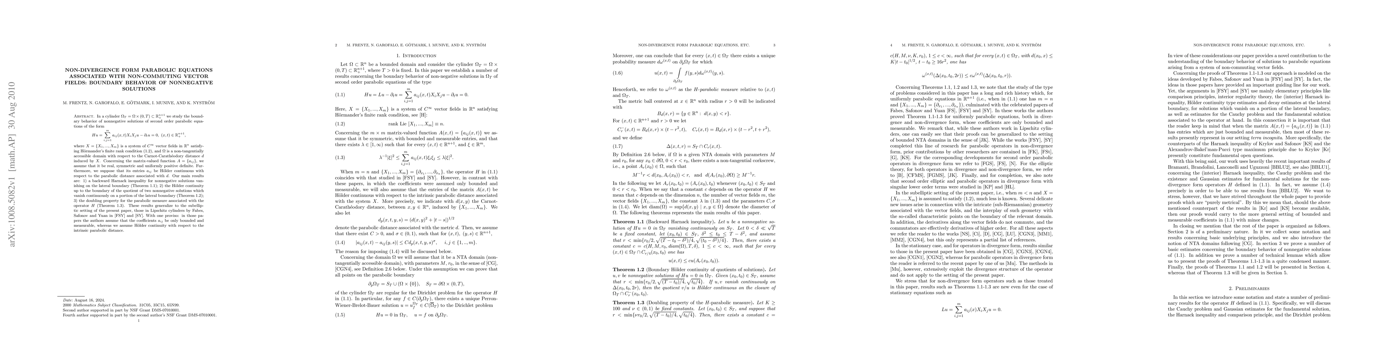 In a cylinder $\Omega_T=\Omega\times (0,T)\subset \R^{n+1}_+$ we study the boundary behavior of nonnegative solutions of second order parabolic equations of the form \[ Hu =\sum_{i,j=1}^ma_{ij}(x,t) X_iX_ju - \p_tu = 0, \ (x,t)\in\R^{n+1}_+, \] where $X=\{X_1,...,X_m\}$ is a system of $C^\infty$ vector fields in $\Rn$ satisfying H\"ormander's finite rank condition \eqref{frc}, and $\Omega$ is a non-tangentially accessible domain with respect to the Carnot-Carath\'eodory distance $d$ induced by $X$. Concerning the matrix-valued function $A=\{a_{ij}\}$, we assume that it be real, symmetric and uniformly positive definite. Furthermore, we suppose that its entries $a_{ij}$ be H\"older continuous with respect to the parabolic distance associated with $d$. Our main results are: 1) a backward Harnack inequality for nonnegative solutions vanishing on the lateral boundary (Theorem \ref{T:back}); 2) the H\"older continuity up to the boundary of the quotient of two nonnegative solutions which vanish continuously on a portion of the lateral boundary (Theorem \ref{T:quotients}); 3) the doubling property for the parabolic measure associated with the operator $H$ (Theorem \ref{T:doubling}). These results generalize to the subelliptic setting of the present paper, those in Lipschitz cylinders by Fabes, Safonov and Yuan in [FSY] and [SY]. With one proviso: in those papers the authors assume that the coefficients $a_{ij}$ be only bounded and measurable, whereas we assume H\"older continuity with respect to the intrinsic parabolic distance.