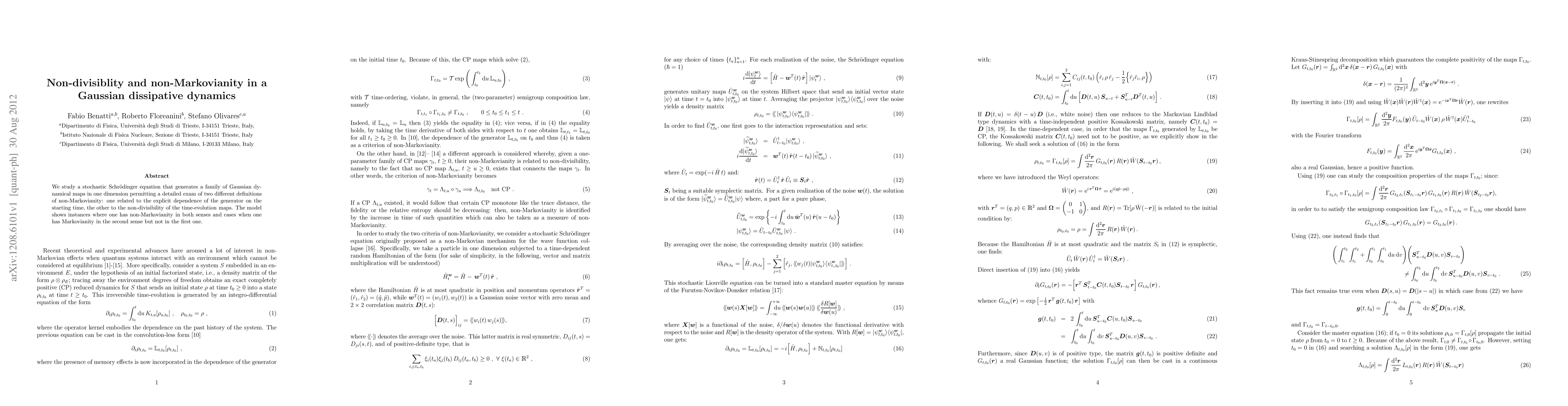 We study a stochastic Schroedinger equation that generates a family of Gaussian dynamical maps in one dimension permitting a detailed exam of two different definitions of non-Markovianity: one related to the explicit dependence of the generator on the starting time, the other to the non-divisibility of the time-evolution maps. The model shows instances where one has non-Markovianity in both senses and cases when one has Markovianity in the second sense but not in the first one.
