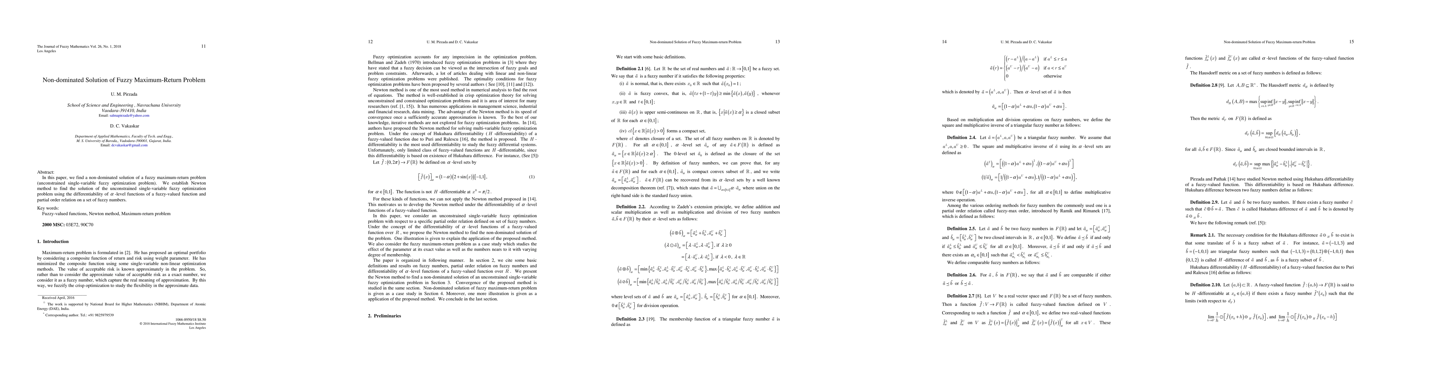 In this paper, we find a non-dominated solution of a fuzzy maximum-return problem ( unconstrained single-variable fuzzy optimization problem ) . We establish Newton method to find the solution of the unconstrained single-variable fuzzy optimization problem using the differentiability of $\alpha$-level functions of a fuzzy-valued function and partial order relation on a set of fuzzy numbers.