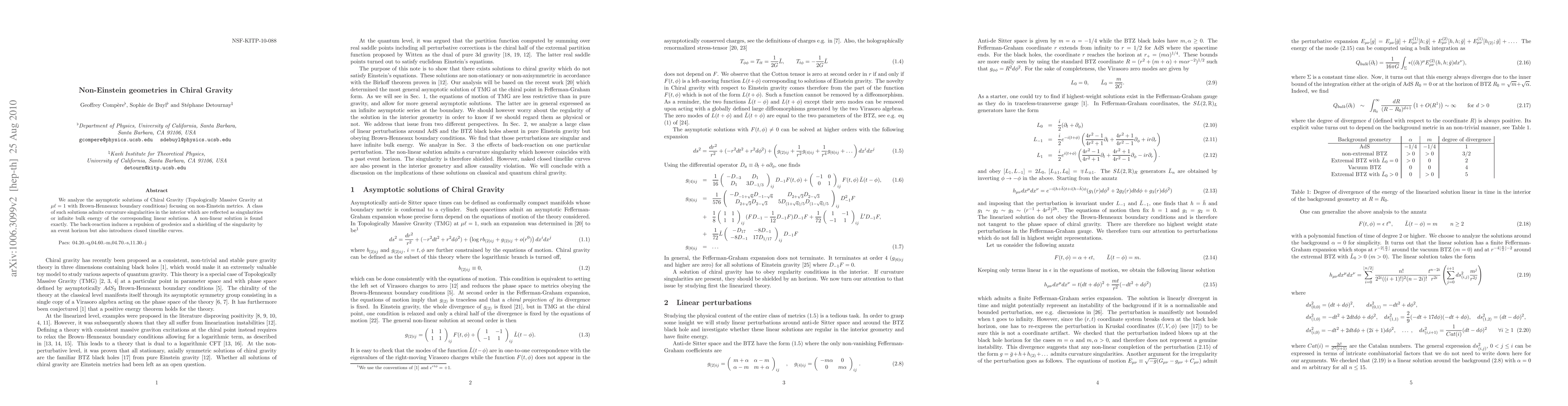 We analyze the asymptotic solutions of Chiral Gravity (Topologically Massive Gravity at \mu l = 1 with Brown-Henneaux boundary conditions) focusing on non-Einstein metrics. A class of such solutions admits curvature singularities in the interior which are reflected as singularities or infinite bulk energy of the corresponding linear solutions. A non-linear solution is found exactly. The back-reaction induces a repulsion of geodesics and a shielding of the singularity by an event horizon but also introduces closed timelike curves.