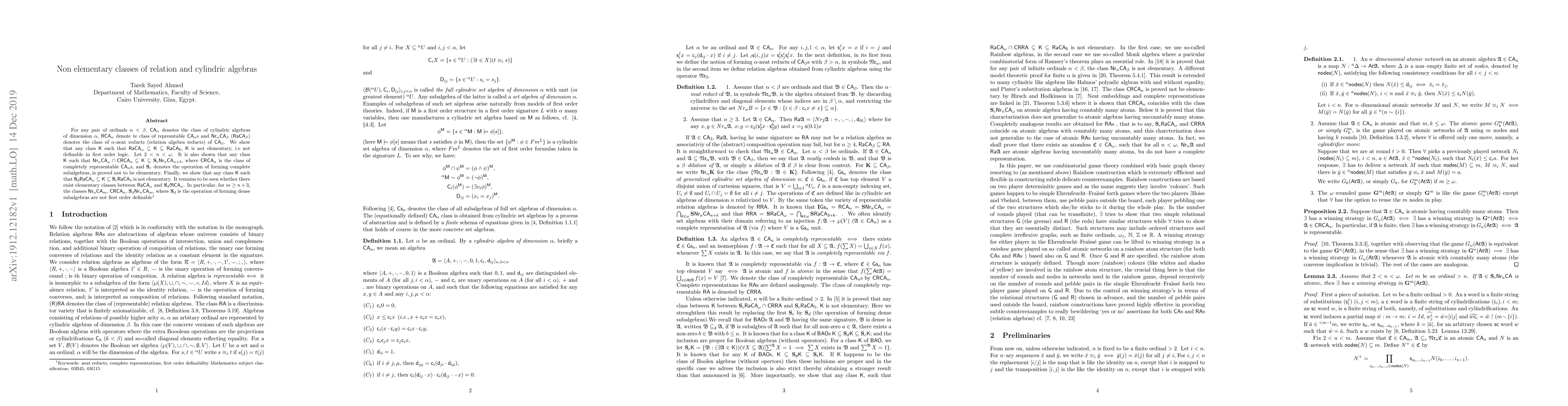 cylindric algebras of dimension $\alpha$, $\sf RCA_{\alpha}$ denote the class
